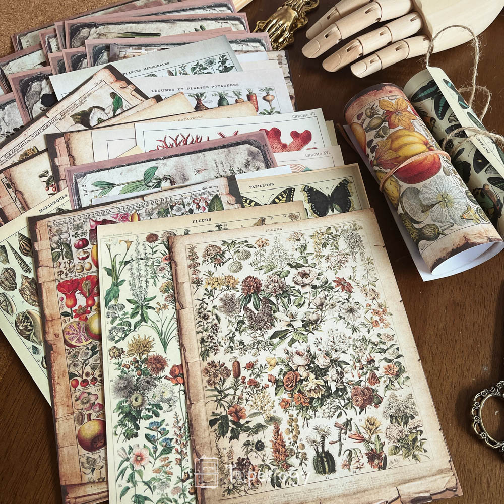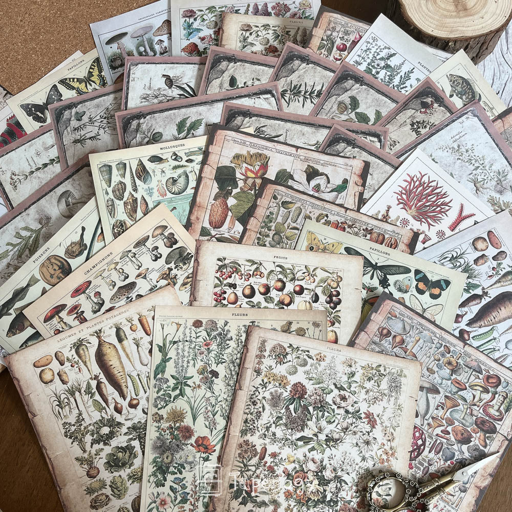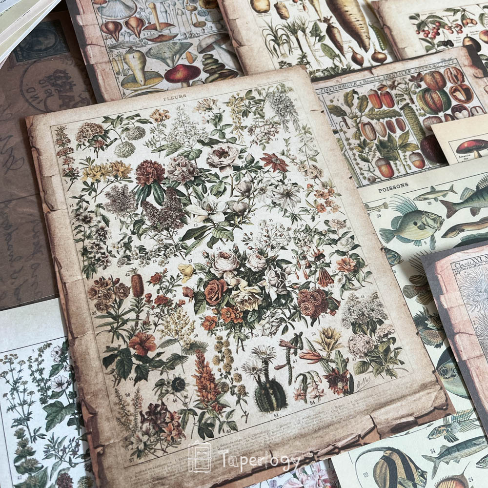 These vintage papers are a breath of fresh air! Every picture is vibrantly colored for that aged yet gorgeous look, like something straight out of a second-hand encyclopedia from decades ago!