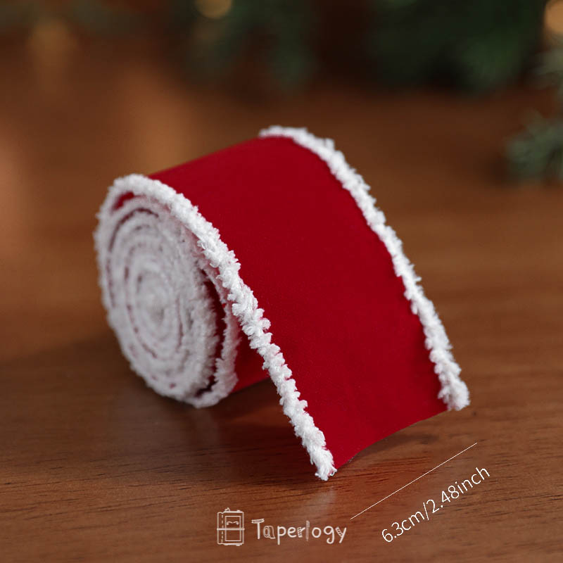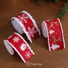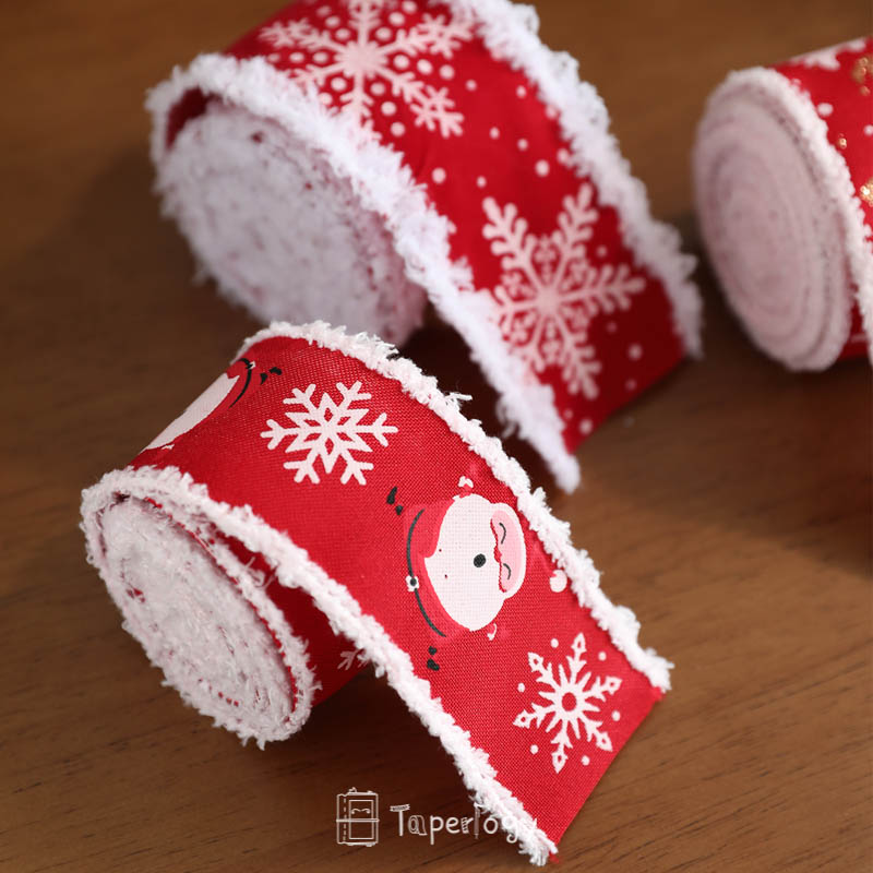 Each pack includes 4 rolls of beautifully designed ribbons, featuring joyful patterns of Santa, reindeer, snowflakes, and Christmas trees all in vibrant holiday red with soft, fluffy white edges for that cozy, wintery touch.