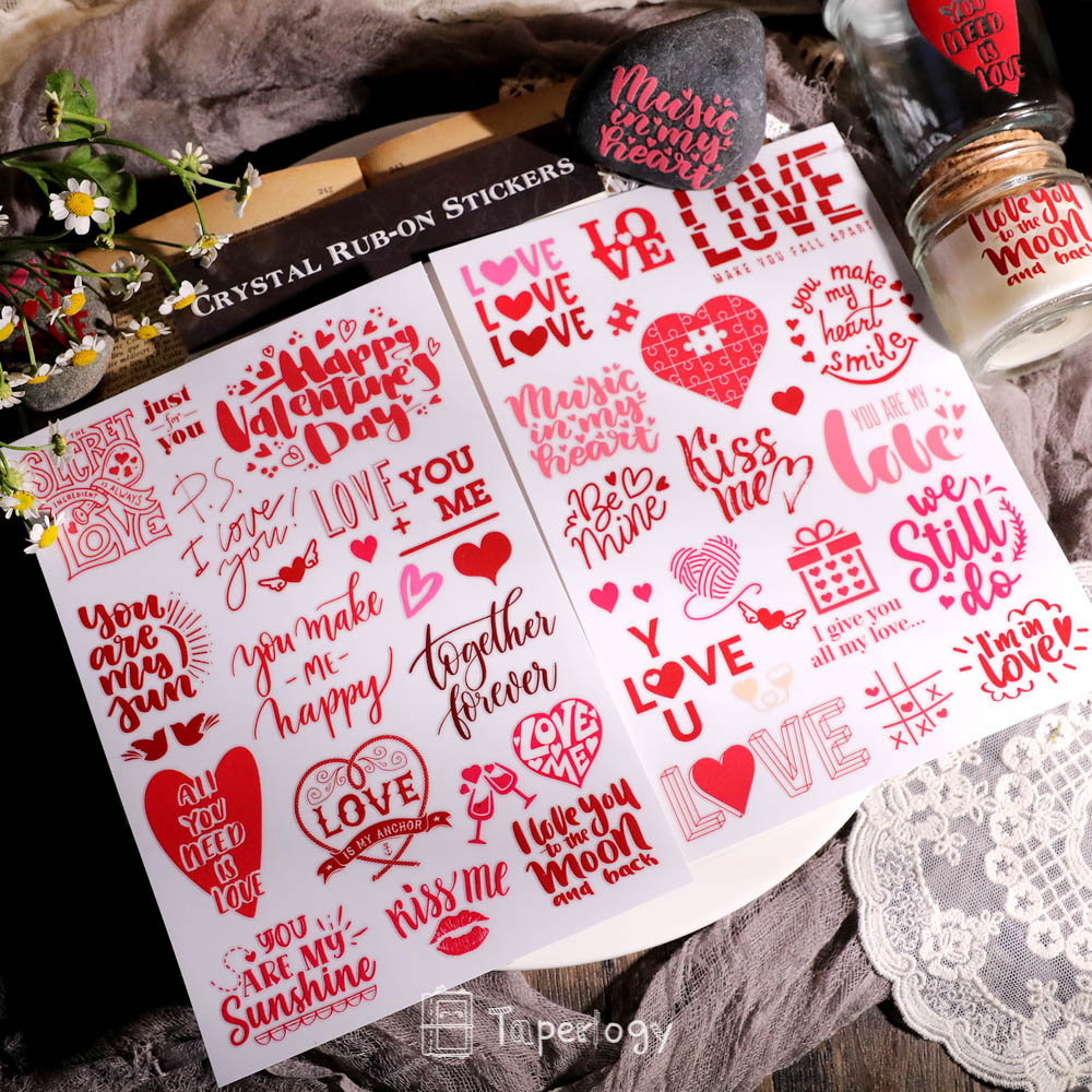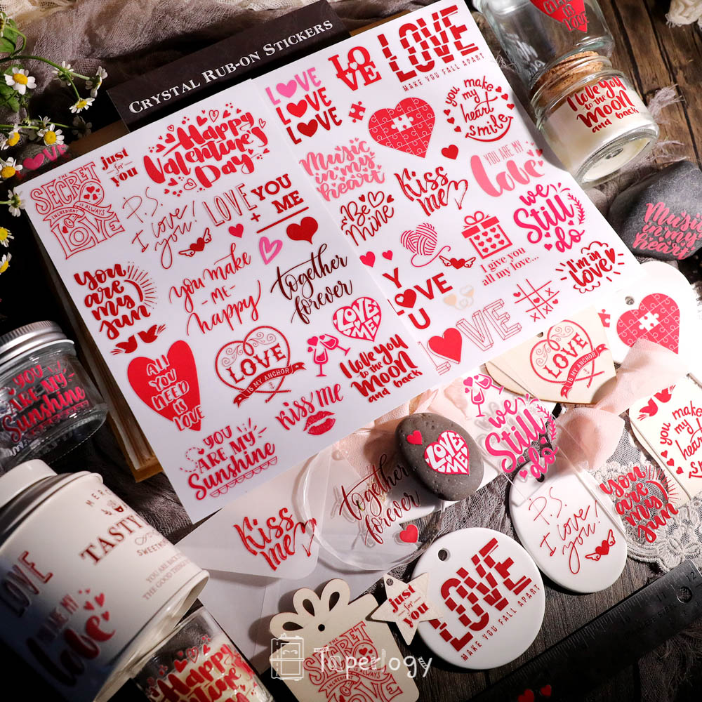 These stickers are perfect for personalizing Valentine’s Day cards, gift wraps, photo albums, or even DIY crafts like candles, ornaments, or keepsake boxes. These rub-on stickers adhere smoothly to almost any hard surface — wood, glass, or metal—adding a seamless, professional touch to your creations.
