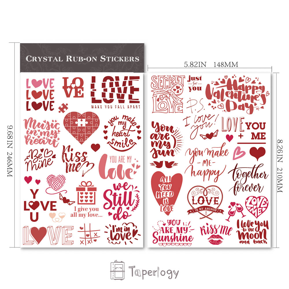 Spread love with our Valentine-themed crystal rub-on stickers, featuring heartfelt romantic phrases like “You are my sunshine”, "All you need is love” and more! Each phrase is elegantly styled with charming typography and delicate flourishes!