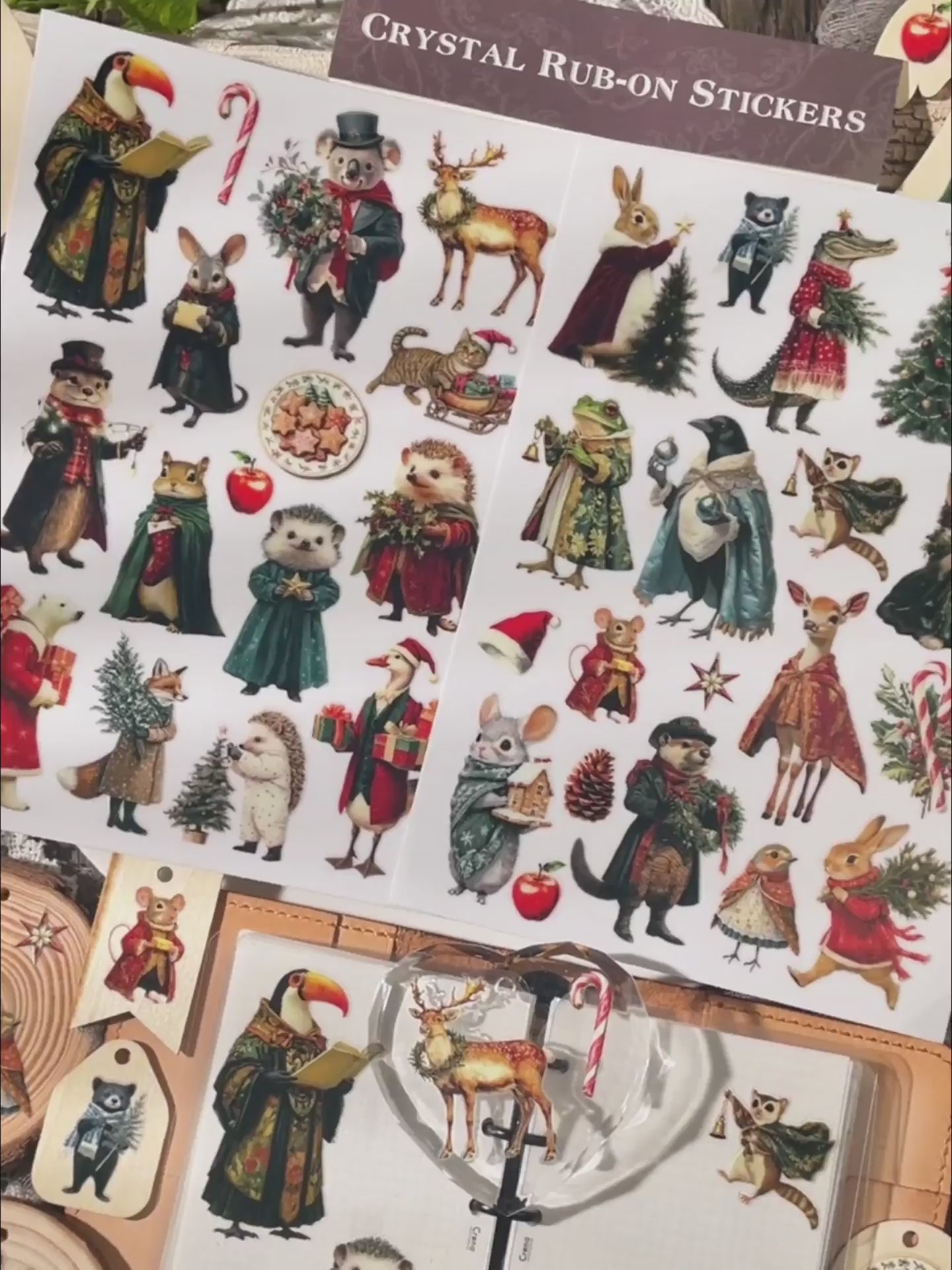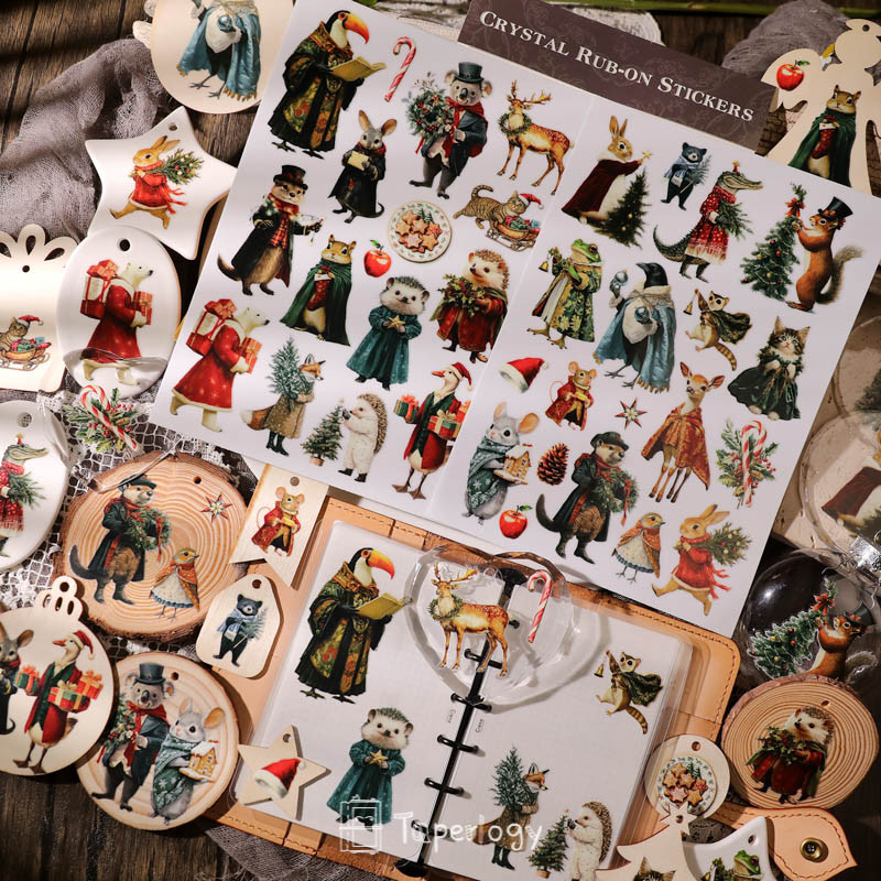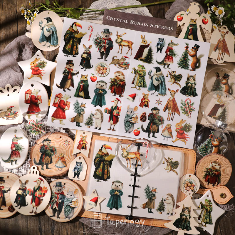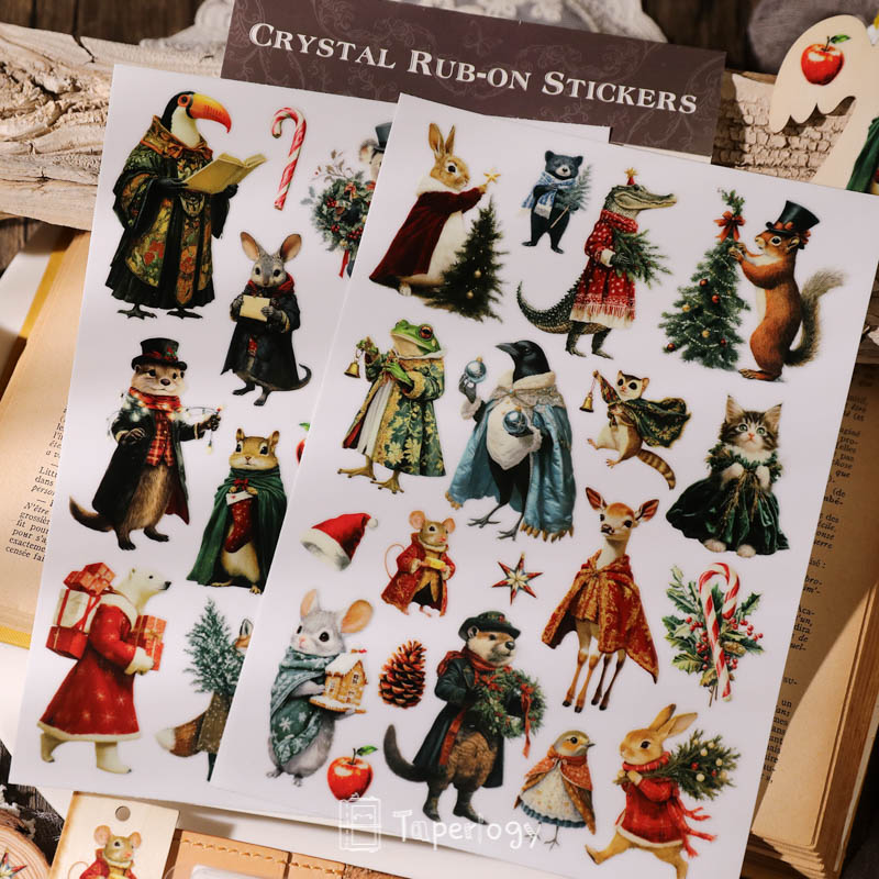 Step into a world of whimsical holiday cheer with our Tino Christmas Party Animals Crystal Rub-On Stickers!