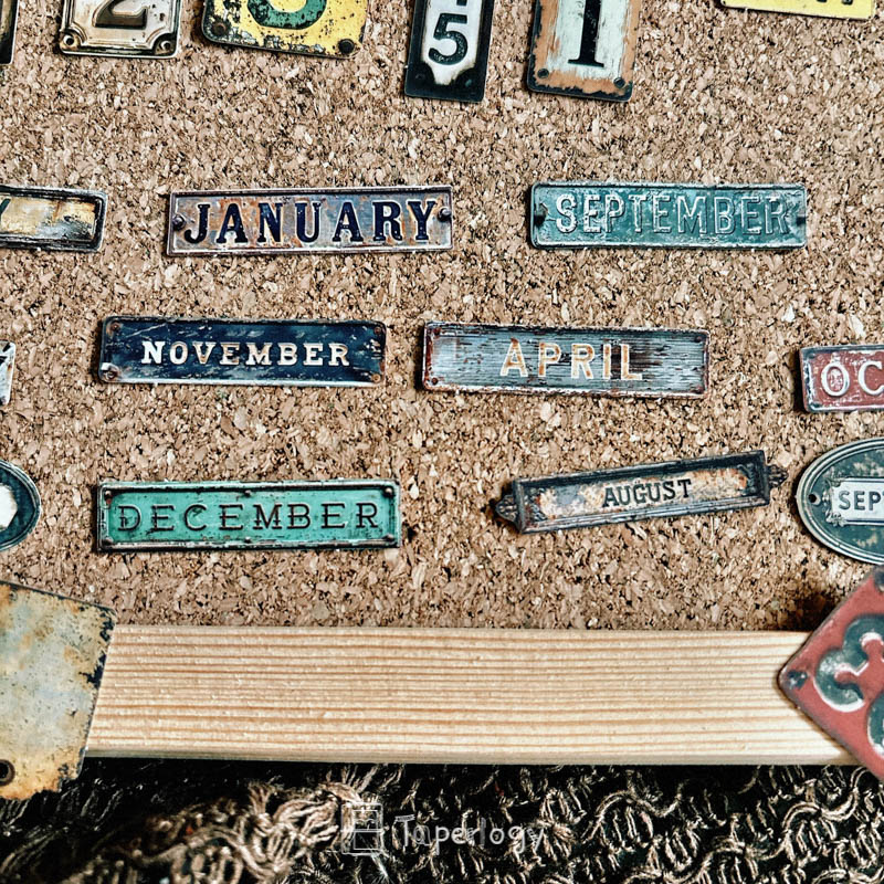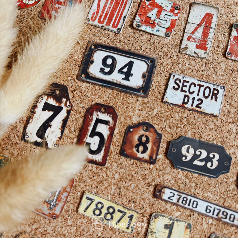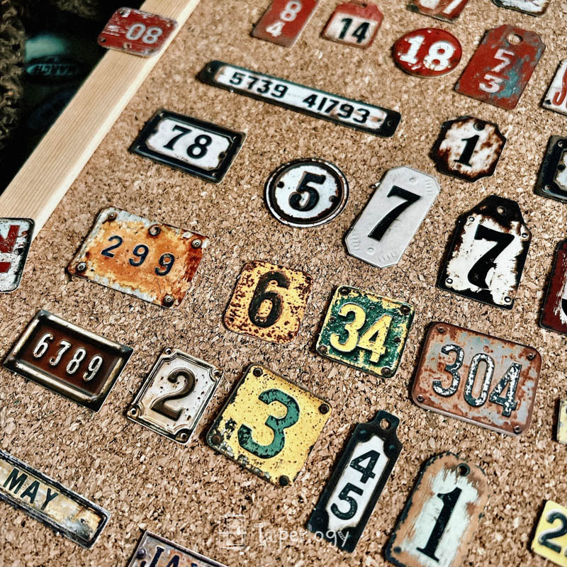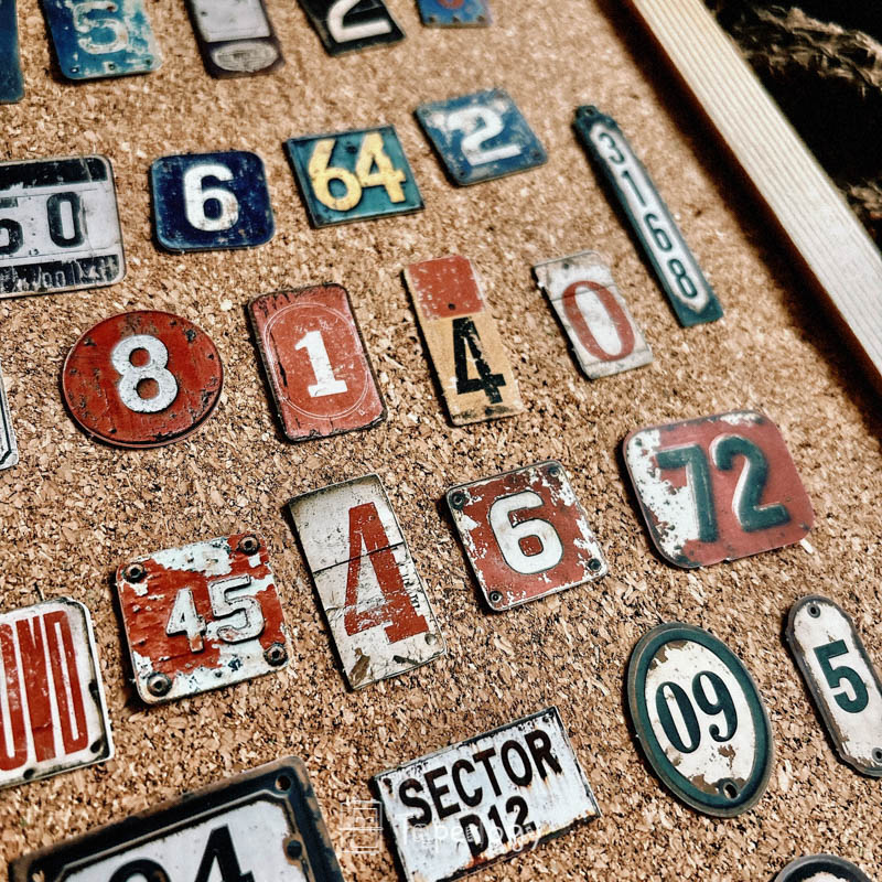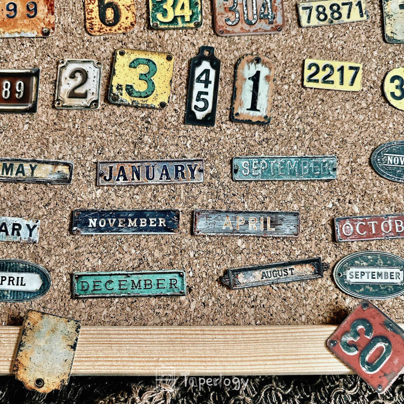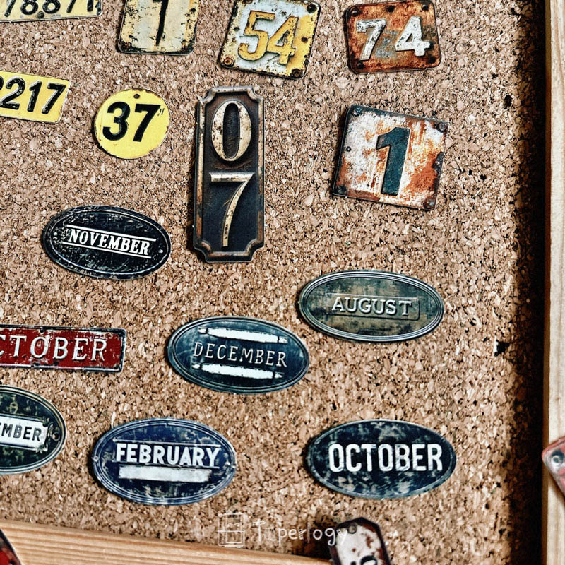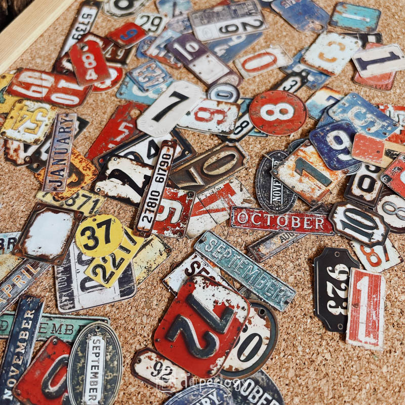 Featuring a wide variety of styles, shapes, and colors, these stickers are designed to mimic the look of old metal signage, license plates, industrial labels, and retro typography. From weathered reds and rusted browns to worn-out blues and punchy yellows, each piece tells a different story. Some are numbered, while others stamped with months or codes, offering endless creative possibilities.