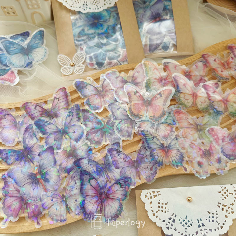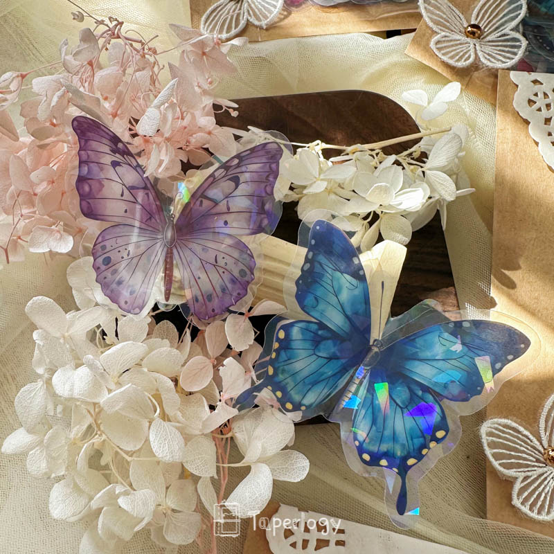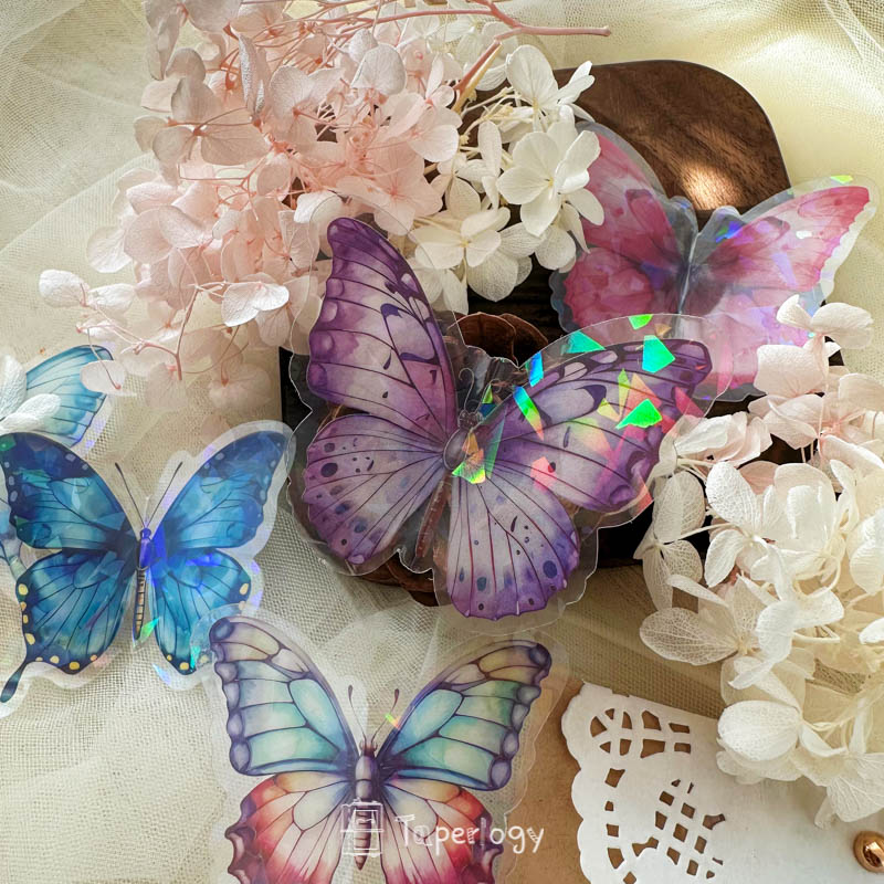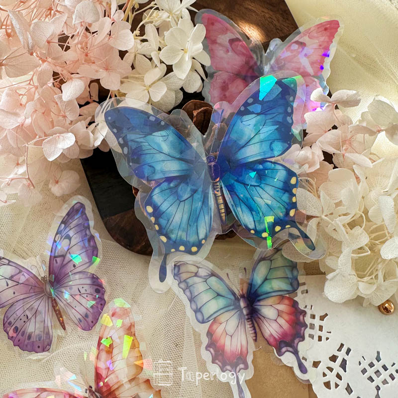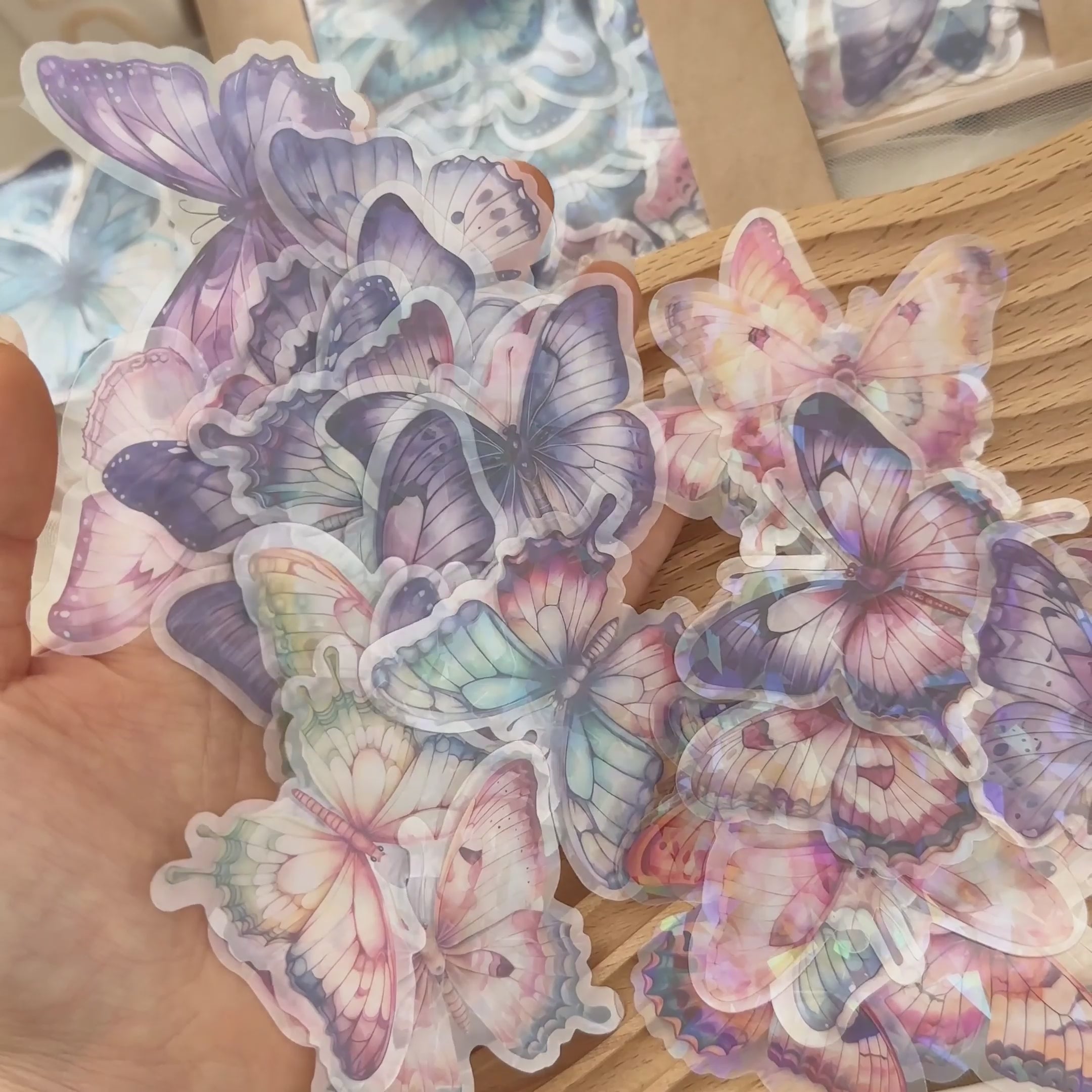 These butterflies aren’t just regular stickers. They catch the light, shift in color, and bring that soft iridescent glow to every surface they touch.