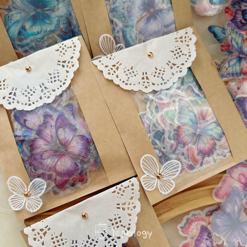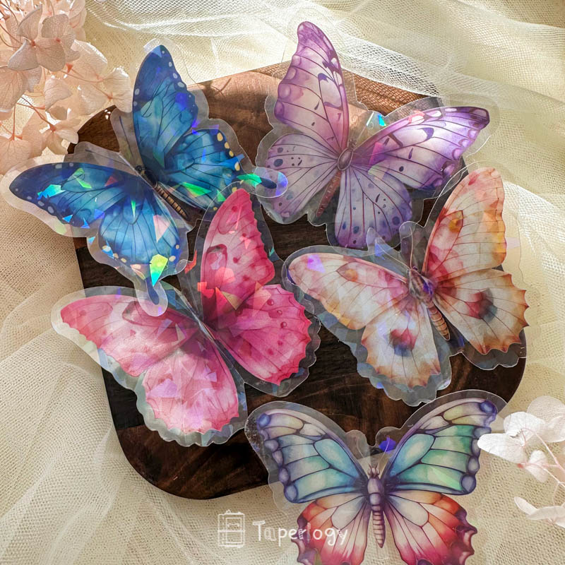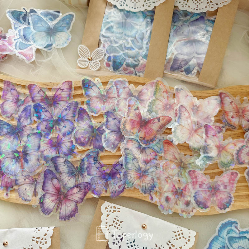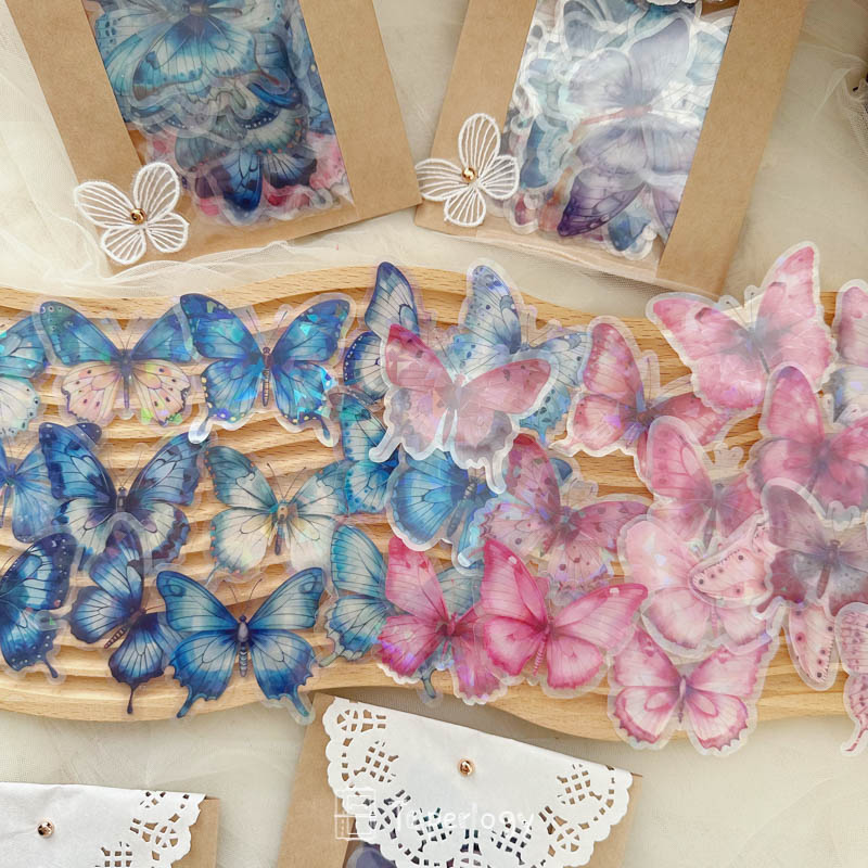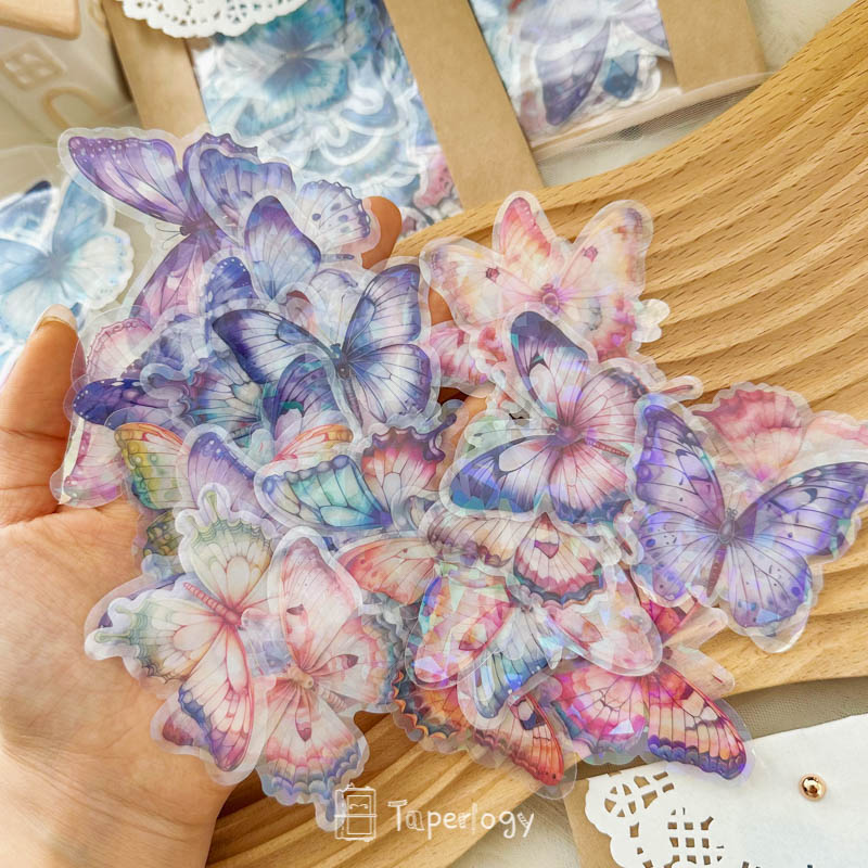 These butterflies aren’t just regular stickers. They catch the light, shift in color, and bring that soft iridescent glow to every surface they touch.