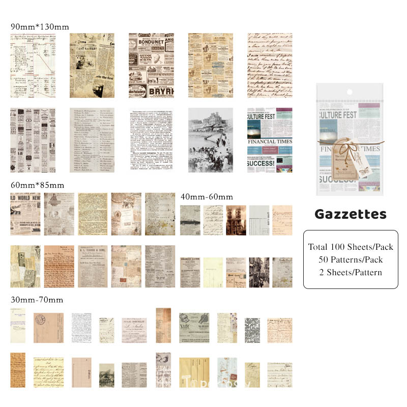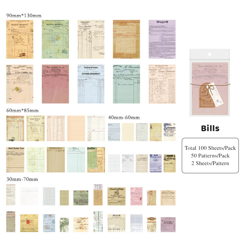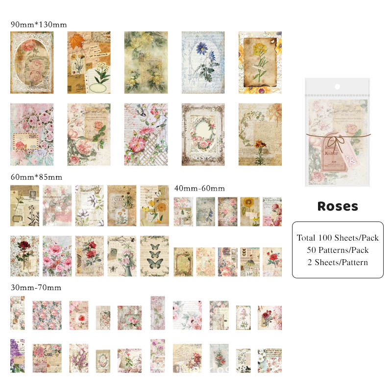 Each pack includes 100 sheets (50 unique designs, 2 of each), ranging from delicate florals and ornate frames to old bills, ledgers, and newspapers. Whether you’re layering collages, creating journal spreads, or crafting one-of-a-kind ephemera, these papers bring a rich vintage feel that instantly elevates your creations.