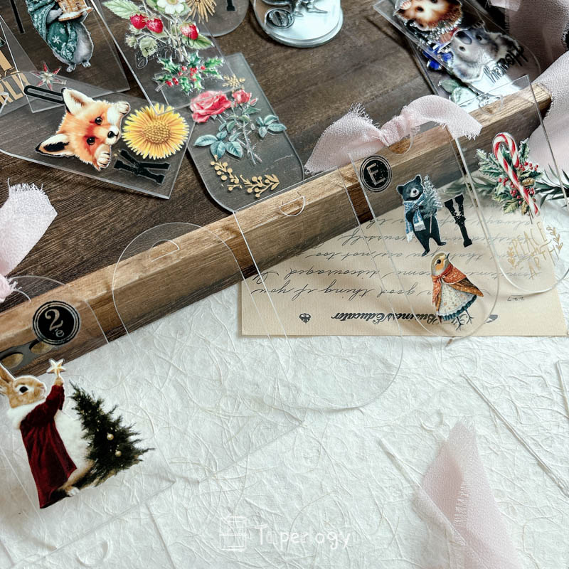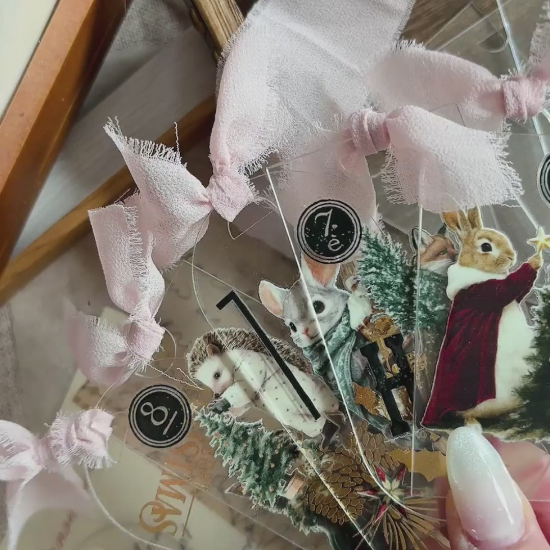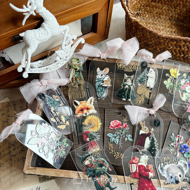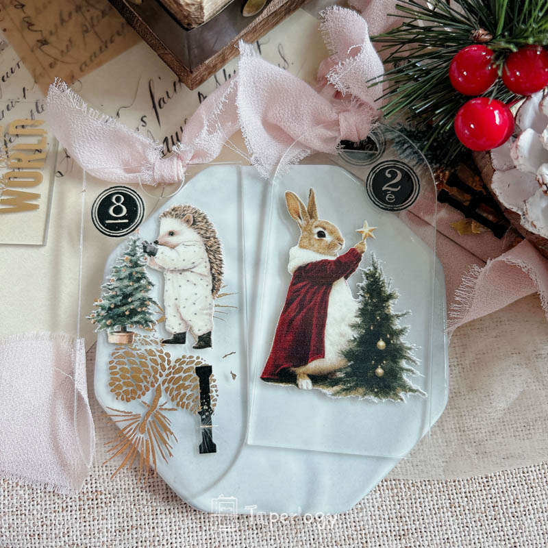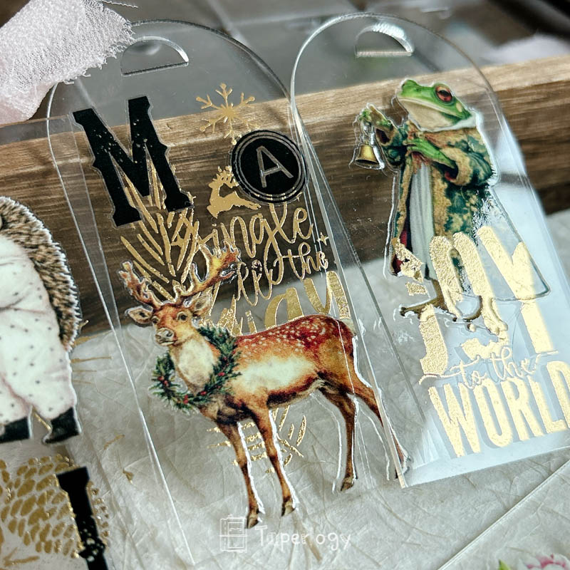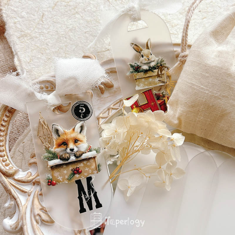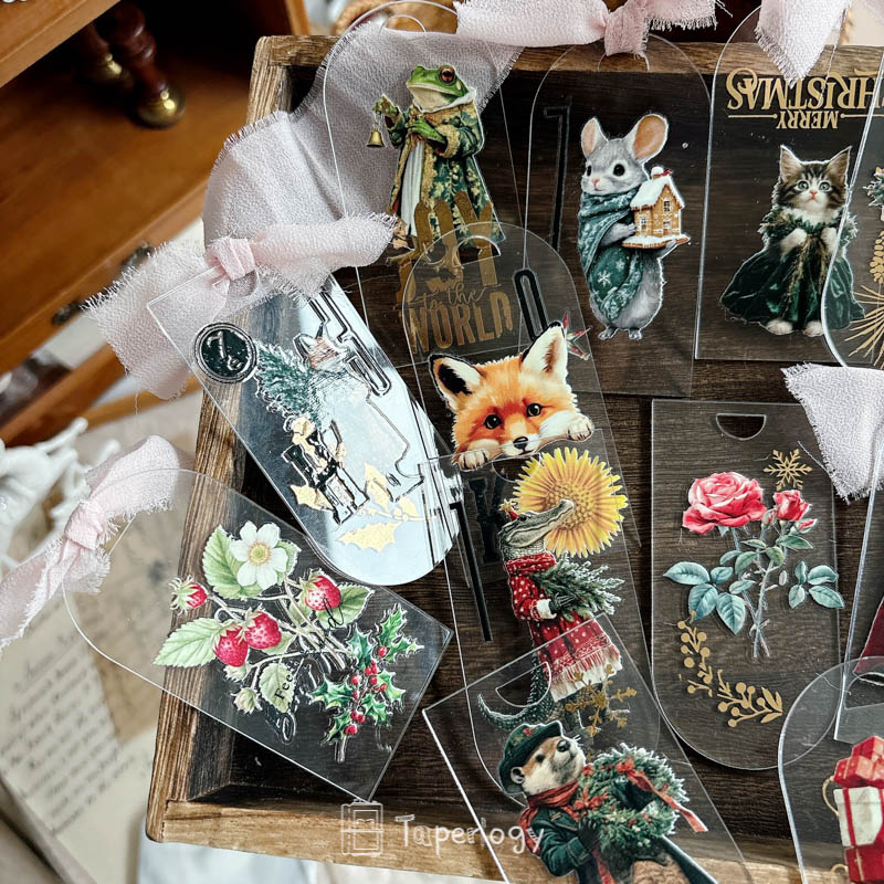 Each set includes 10 acrylic tags and a 2-meter roll of soft, frayed ribbon for adding a lovely finishing flourish.  Pick between two acrylic finishes: a crystal-clear version or a matte translucent option that diffuses light beautifully!