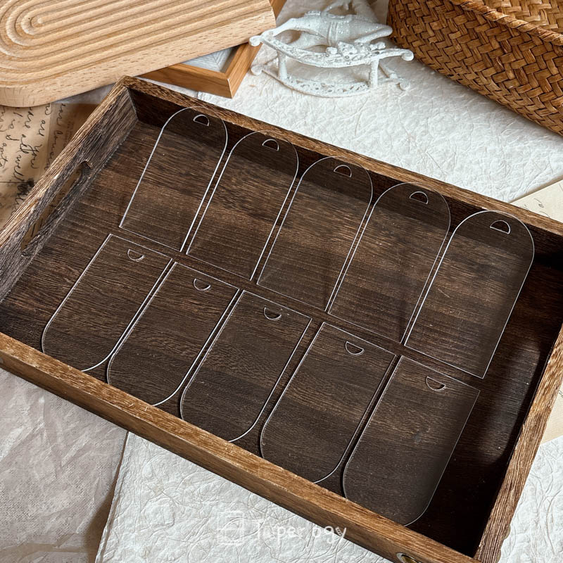 Both sides of the acrylic tags are protected with a thin film to prevent scratches—please peel this off before using. Some minor scratches may appear on the protective film itself, but this will not affect the final use once removed.