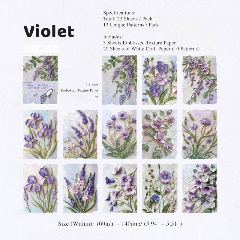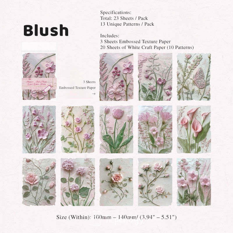 - 3 sheets are embossed, offering a tactile, three-dimensional feel with raised floral details.