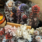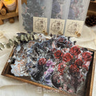 A collection of 32 intricately detailed roses blooming in haunting elegance, each piece captures the moody charm of velvety petals in deep crimson, ash gray, and dusky lilac tones. With a soft transparent look, each rose portrays an illusion of floating between shadow and light, evoking feelings of romance and mystery!