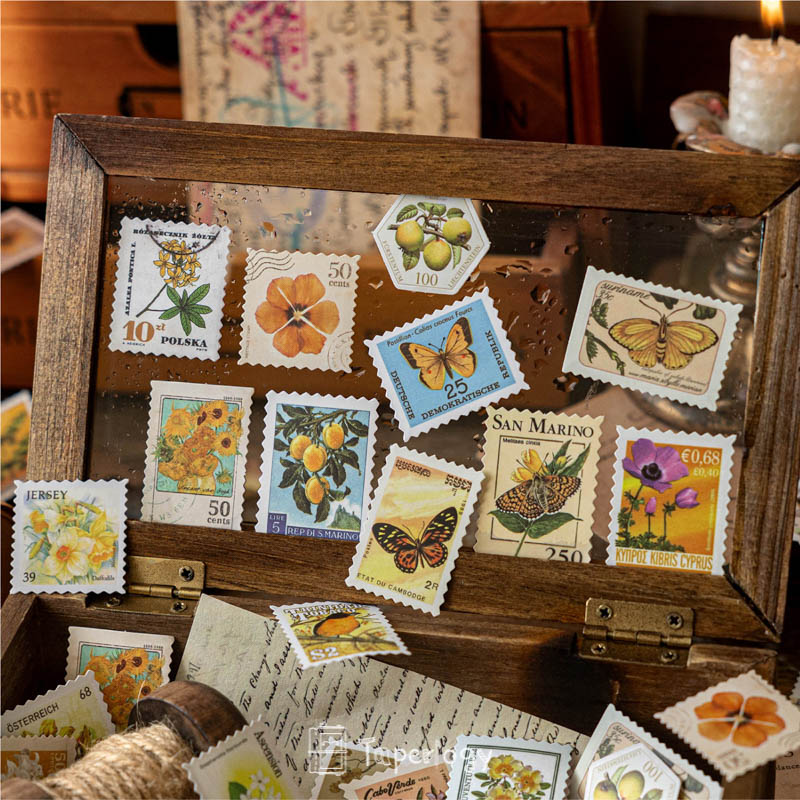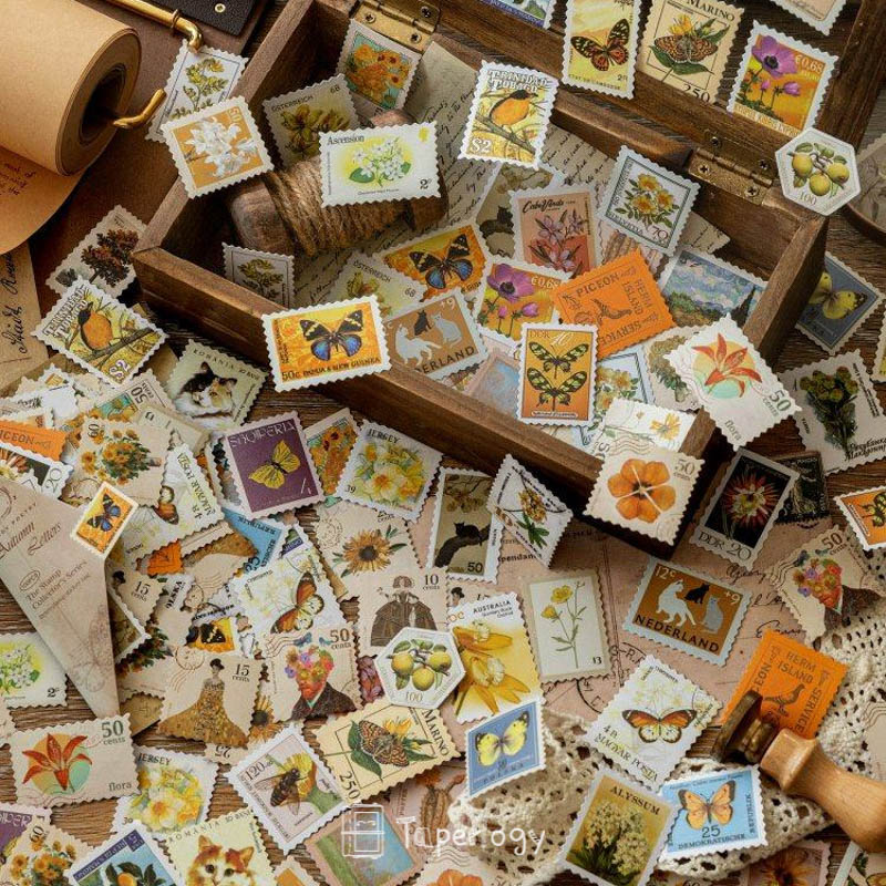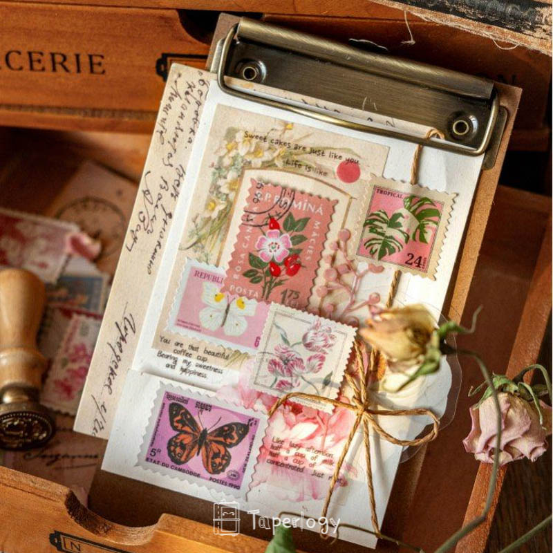 Bring the charm of old-world correspondence into your creative projects with this vintage-inspired stamp sticker collection. Designed to look like authentic postage stamps, each piece features delicate illustrations of florals, butterflies, animals, landscapes, and classic postal motifs in a beautifully curated mix of colors and styles.