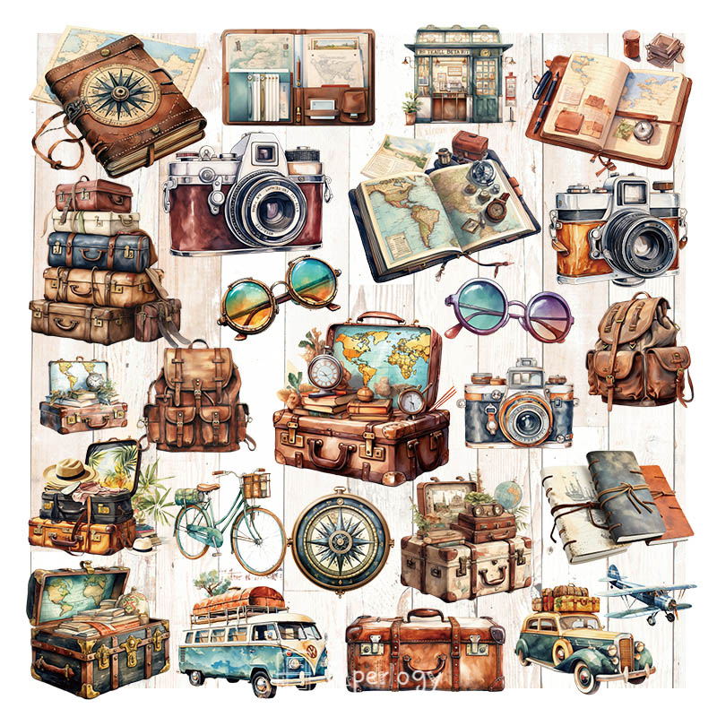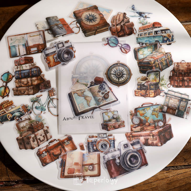 Satisfy that wanderlust with these travel themed stickers! With maps, cameras, luggage and more, you'll be sure to scratch that travel itch!
