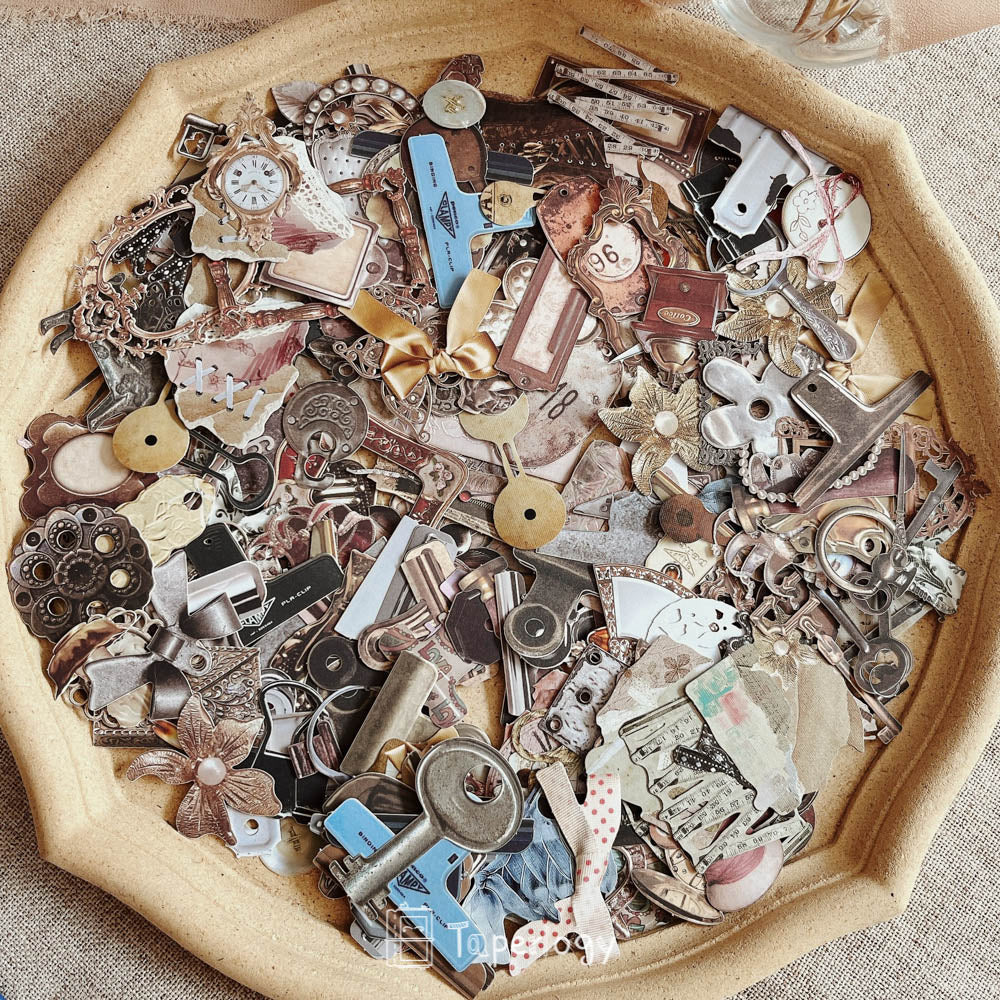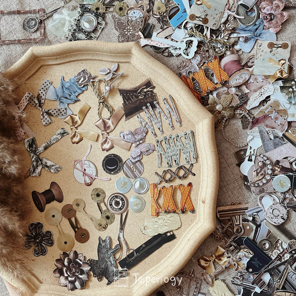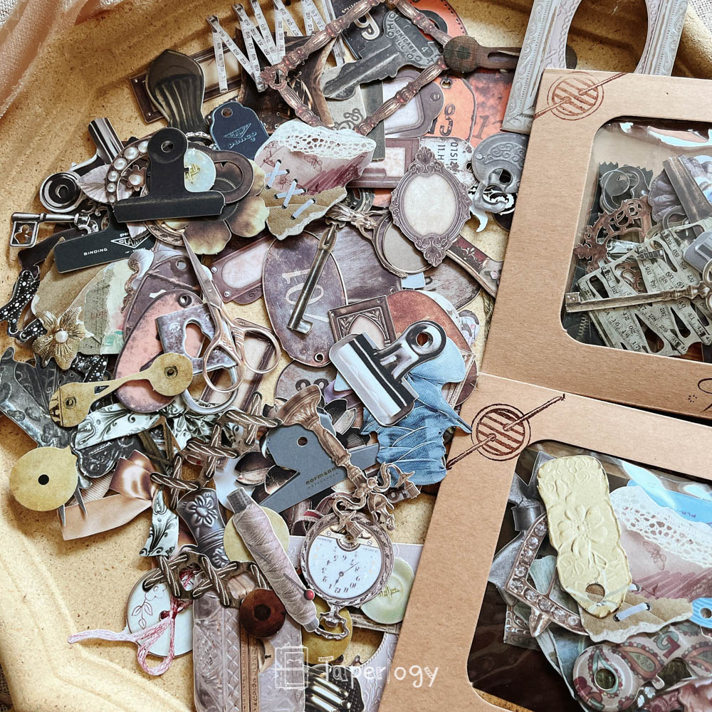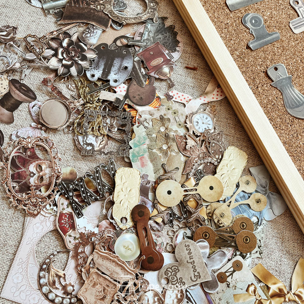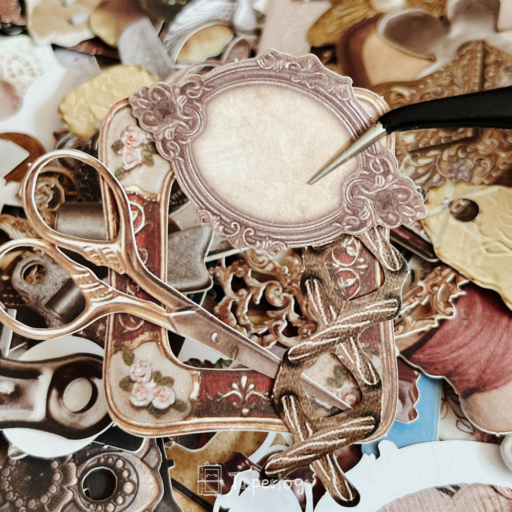 Dieses Paket ist ein Sammelsurium verschiedener Schnickschnack-Designs. Von Nähutensilien über Schlösser bis hin zu Knöpfen und vielem mehr – die Vielfalt in diesem Paket ist unschlagbar! Jedes Paket enthält 110 Teile aus einer Mischung aus 300 g/m² Hartkarton, Spezialpapier und Stickermaterial für ein hochwertiges Gefühl!