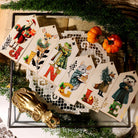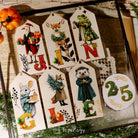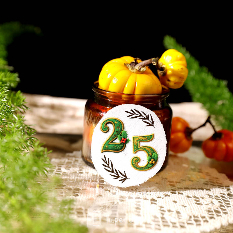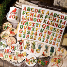 Jeder Buchstabe und jede Zahl steckt voller Weihnachtsfreude – mit Zuckerstangen, Christbaumkugeln, Stechpalmen, Schleifen und vielem mehr.