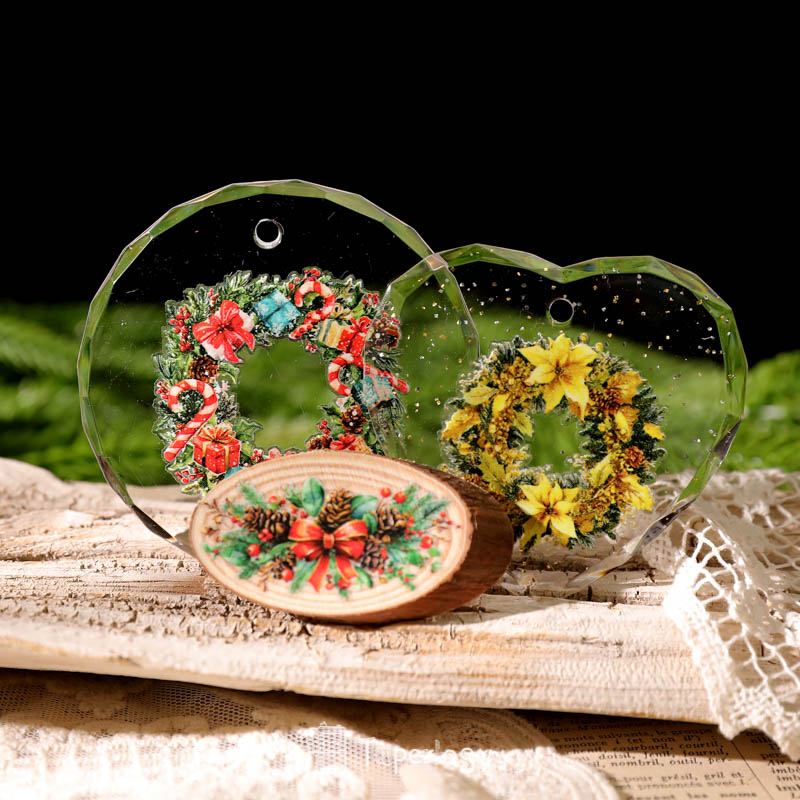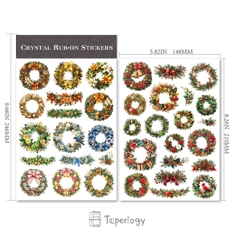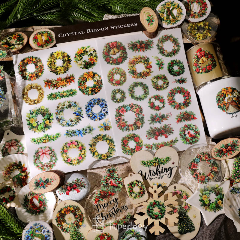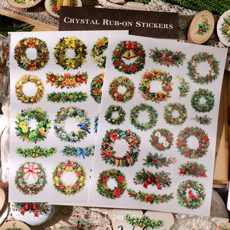 Celebrate the season in timeless style with these festive Christmas wreaths crystal rub-on stickers!