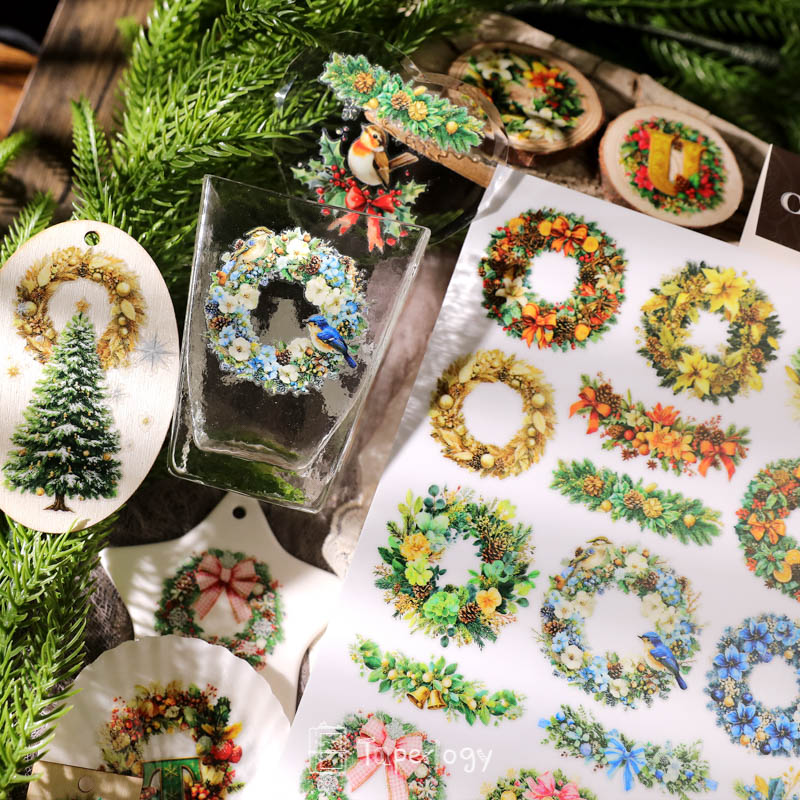 Filled with beautifully detailed holiday wreaths, each sticker in this pack is brimming with seasonal charm. From classic holly and red ribbons to candy canes and presents, these designs capture the warmth and joy of Christmas traditions!