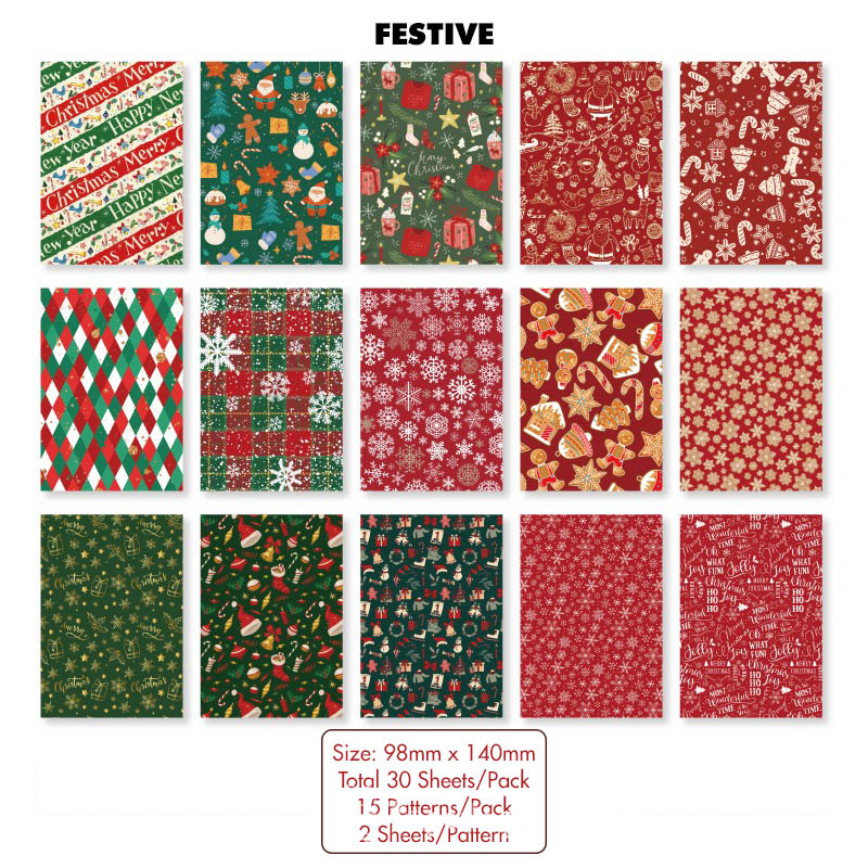 Suchen Sie nach Papier, um Ihre Weihnachtskarten und Bastelarbeiten zum Leben zu erwecken? Diese farbenfrohen und fröhlichen Designs bringen Wärme und Freude in die Weihnachtszeit!