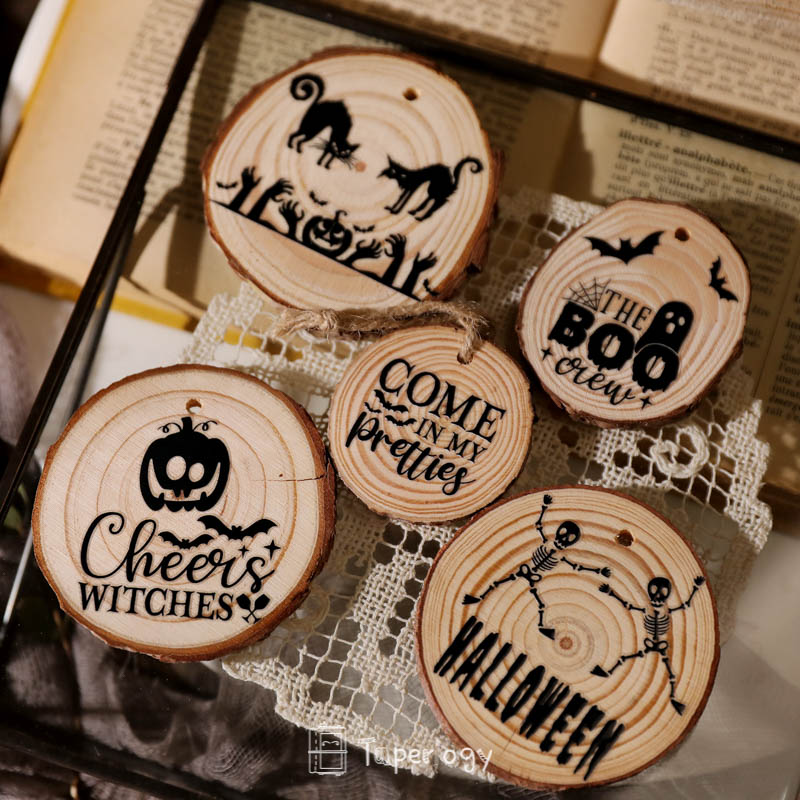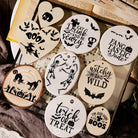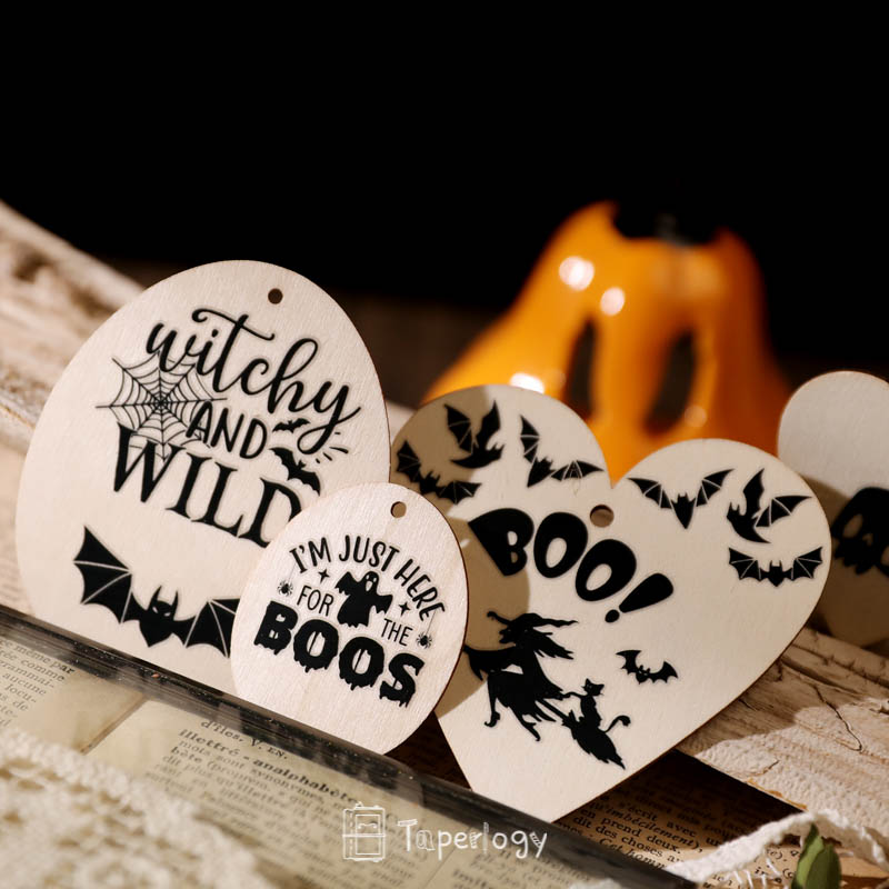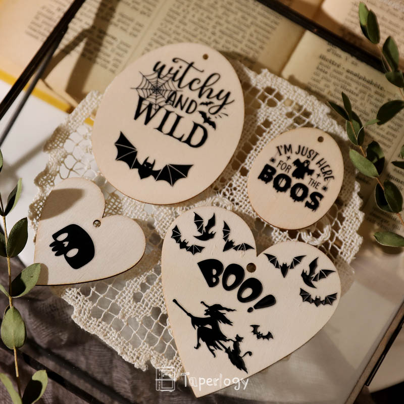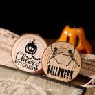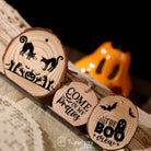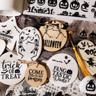 Jedes Design fängt den verspielten Geist von Halloween ein – mit schwarzer Schrift, niedlich-gruseligen Symbolen und witzigen Sprüchen wie „Süßes oder Saures“, „Hexy & Wild“ und „Fang-tastischer Typ“.