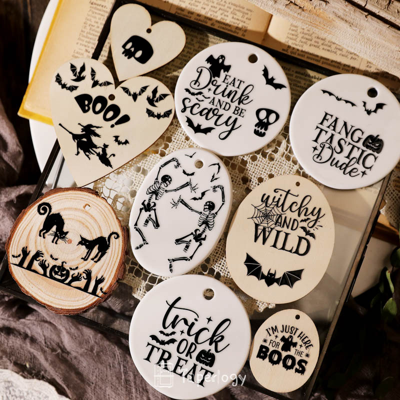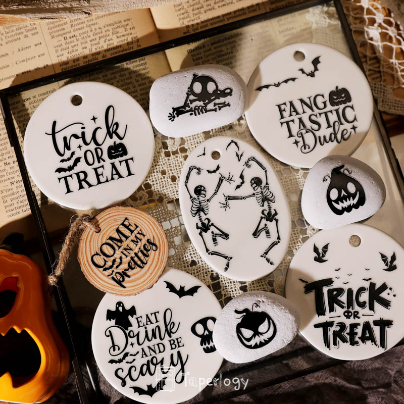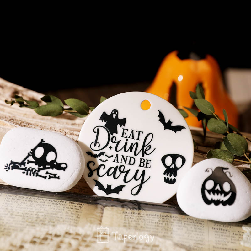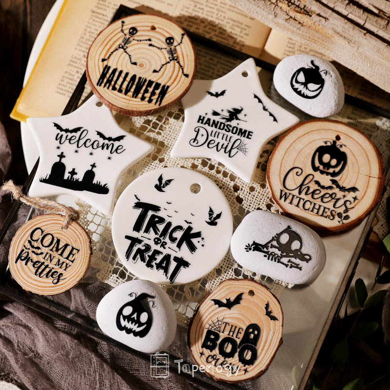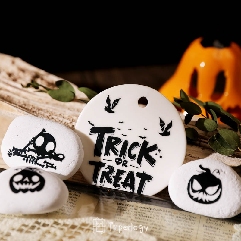 Dank des klaren Schwarz-Weiß-Stils setzen diese Kristall-Rub-On-Sticker auf Acrylanhängern, Geschenktüten, Kerzen oder Halloween-Mitgebseln einen auffälligen, schaurigen Akzent auf jede Oberfläche!