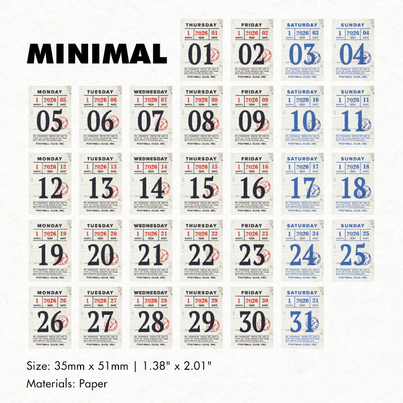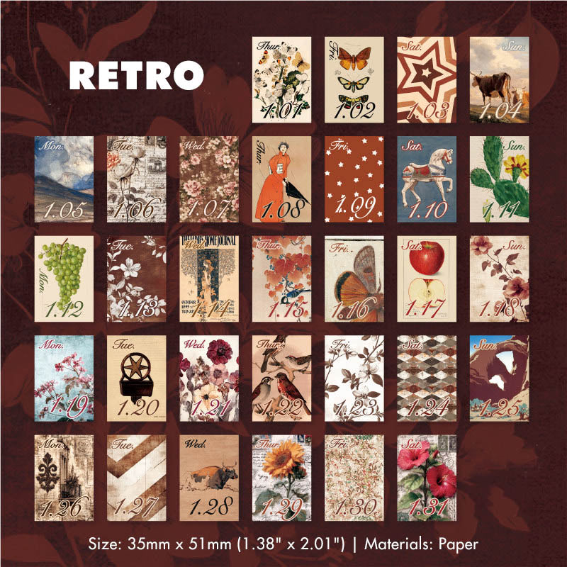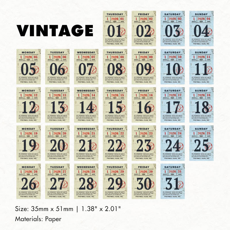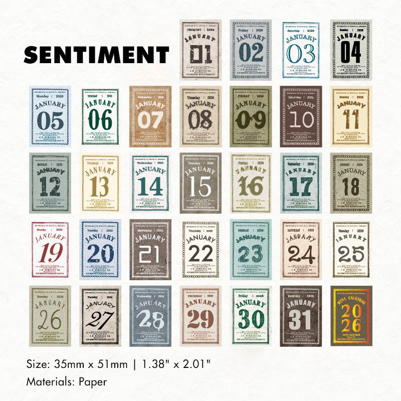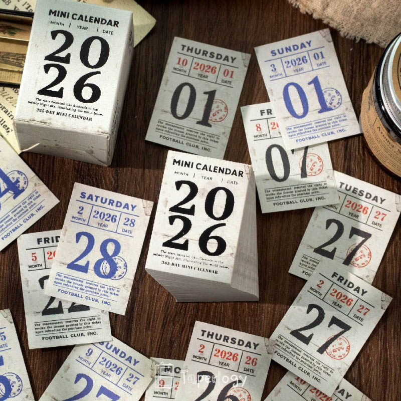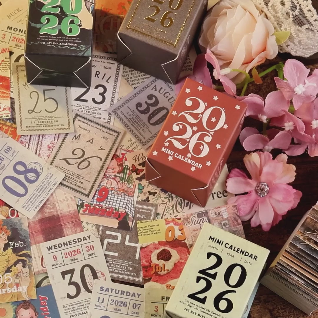 The Rosu 2026 Mini Daily Calendar features 365 individual pages, one for every day of the year. Each page showcases a thoughtfully designed layout with a distinct vintage-inspired aesthetic, making it both practical and beautiful.