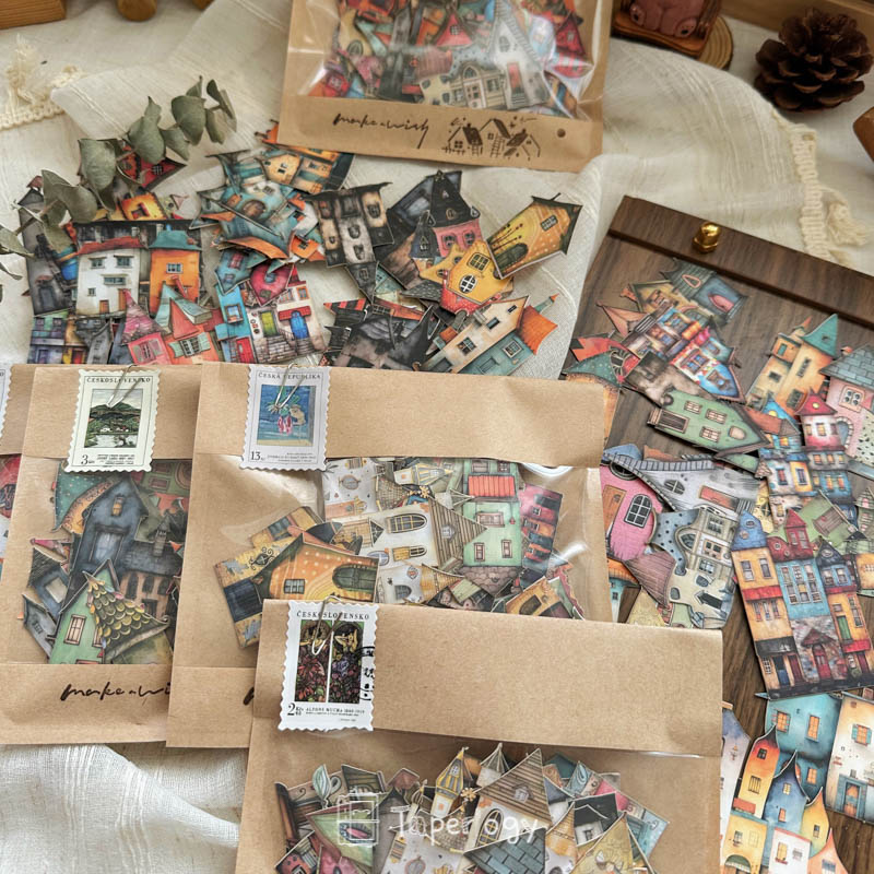 Step into a world of imagination with the Hazo Tiny Town Cardstock Stickers, a delightful collection of houses inspired by fairytales, medieval charm, and cozy fantasy towns.