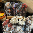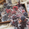 A collection of 32 intricately detailed roses blooming in haunting elegance, each piece captures the moody charm of velvety petals in deep crimson, ash gray, and dusky lilac tones. With a soft transparent look, each rose portrays an illusion of floating between shadow and light, evoking feelings of romance and mystery!
