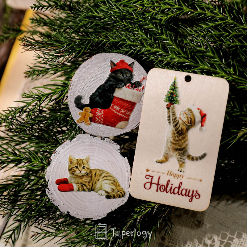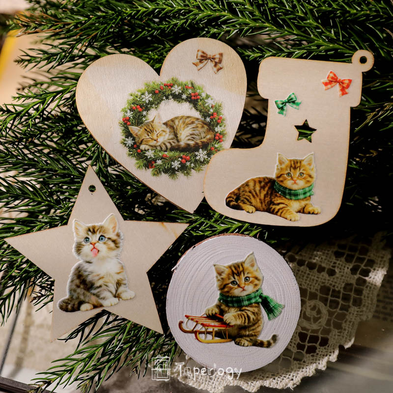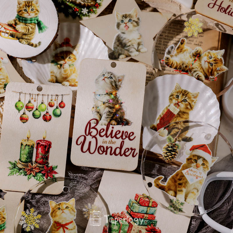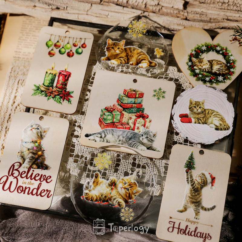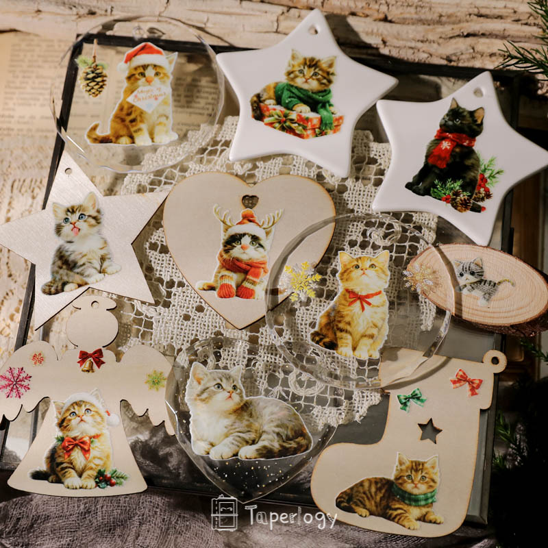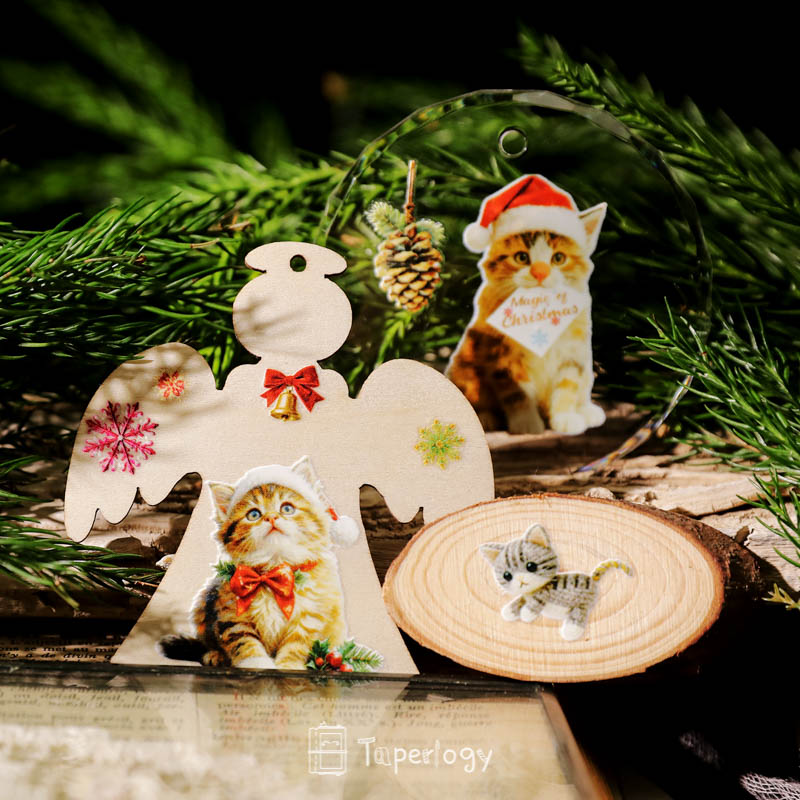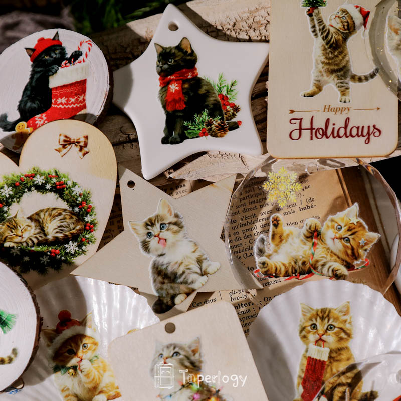 This pack is filled with adorable cats dressed for Christmas, from playful kittens tangled in tinsel to cozy ones snuggled in scarves and stockings. Each sticker captures the heartwarming charm of the season, perfect for decorating tags, ornaments, mugs, candle holders, and more.