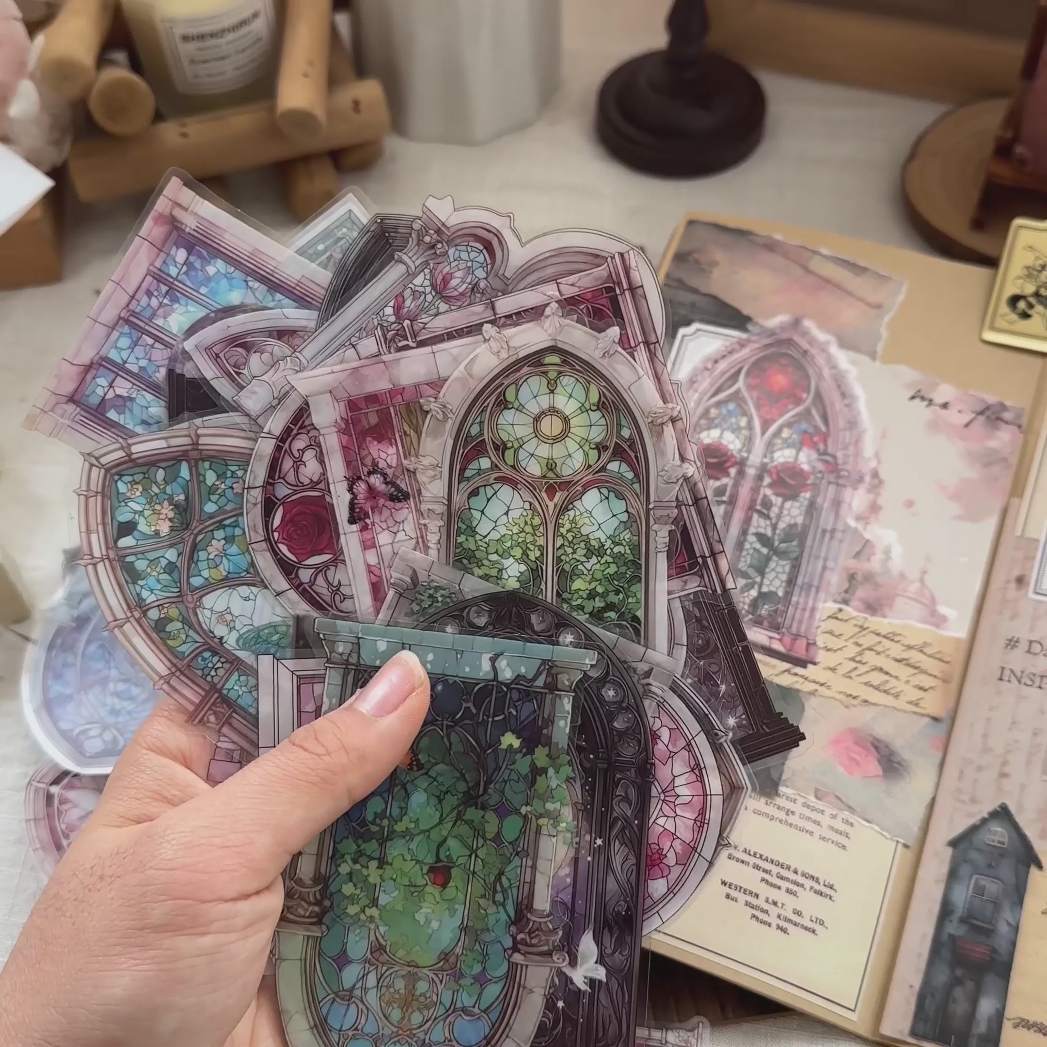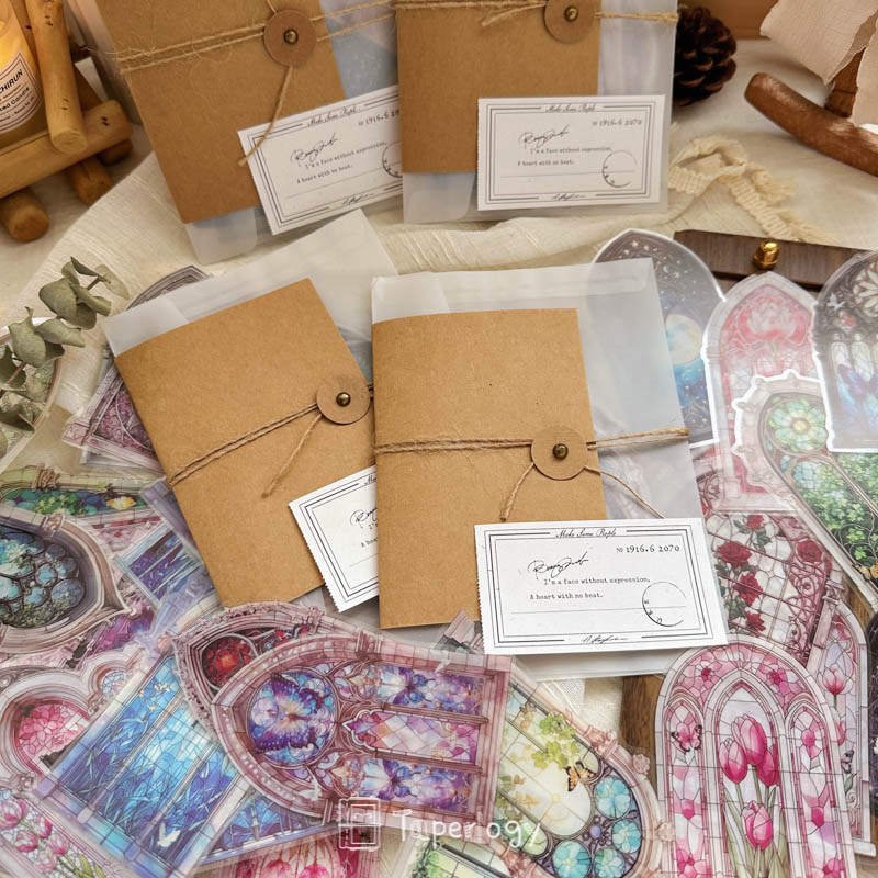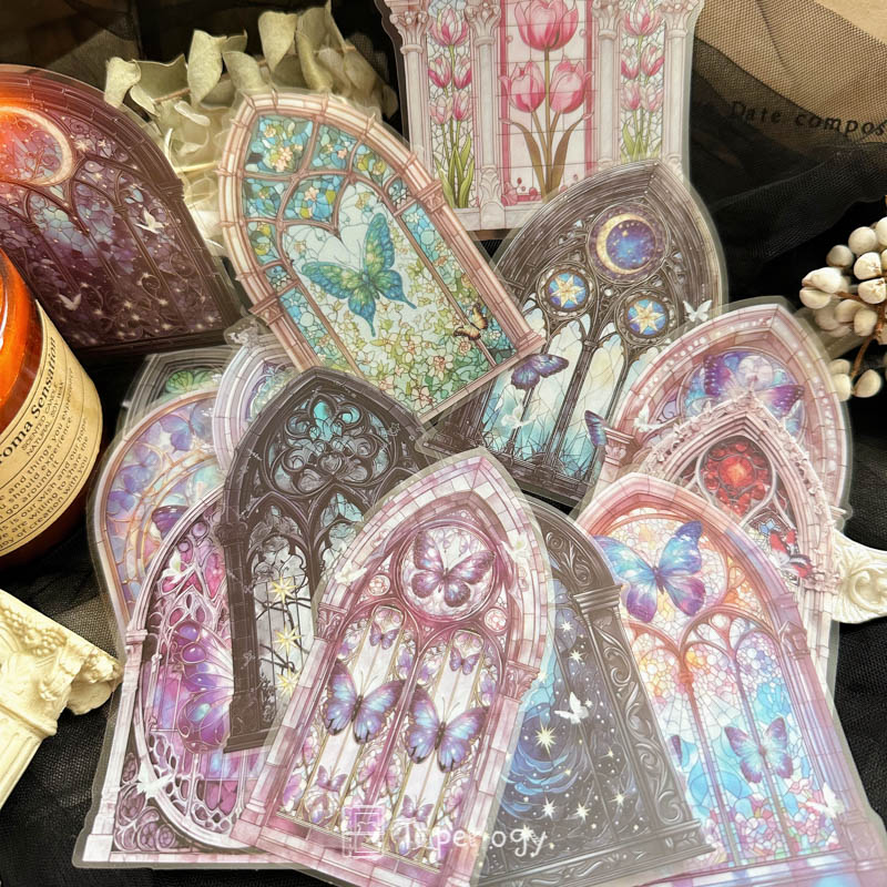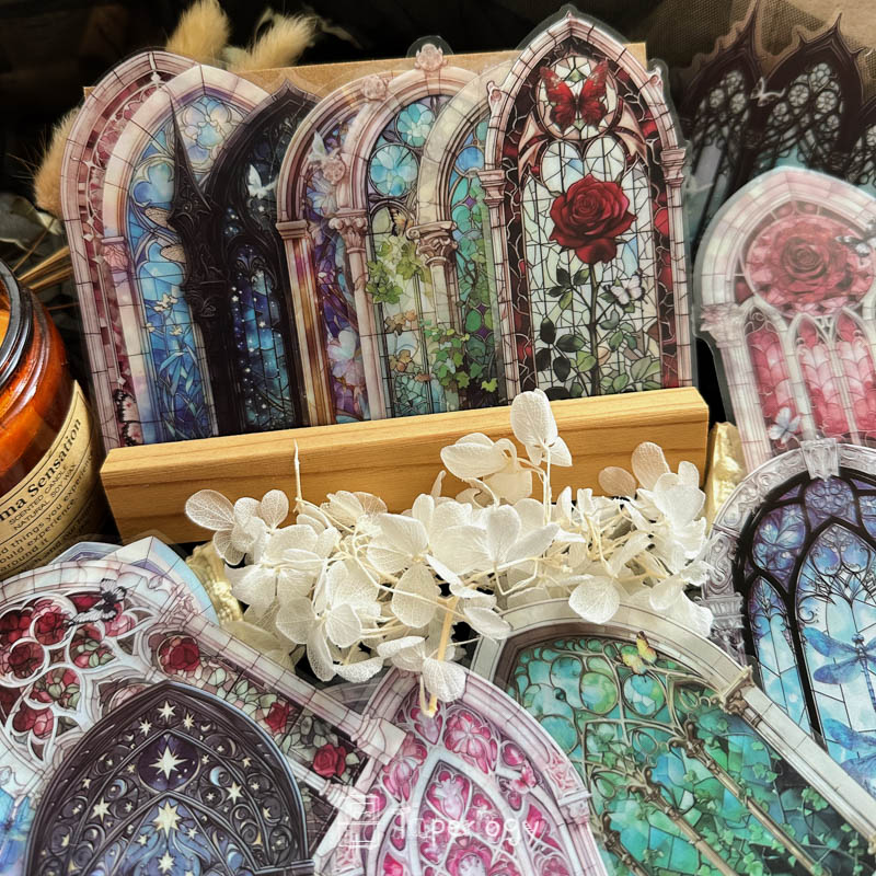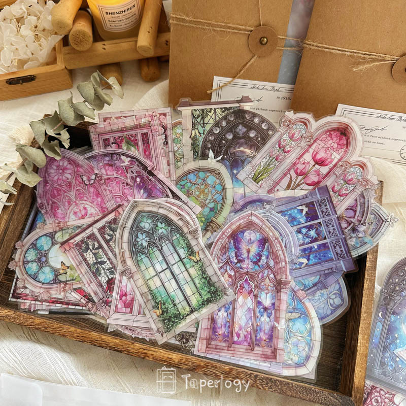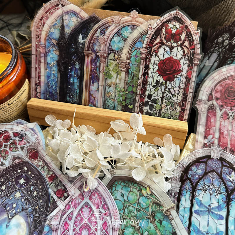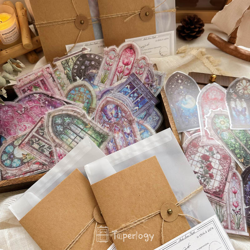 Each pack features 42 pieces that capture the beauty of intricate window designs, from blooming florals and ivy-covered panes to celestial glass framed in ornate arches. The soft interplay of color and transparency creates a dreamlike glow, perfect for adding a touch of wonder to your journals, tags, and crafts!