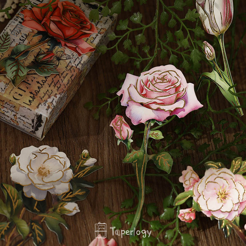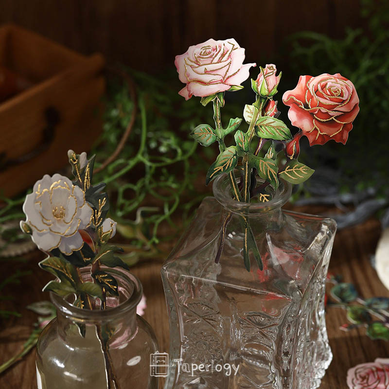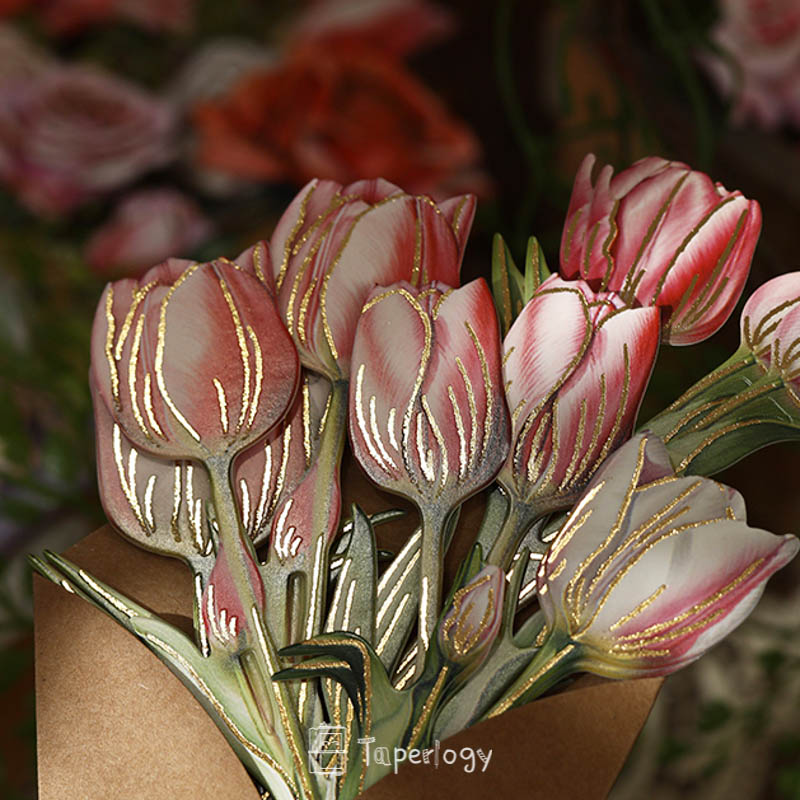 Each bouquet is crafted from thick card stock with delicate gold foil outlines, giving the flowers a luxurious shimmer that catches the light. Wrapped in kraft paper, every piece feels like a hand-tied gift, perfect for journaling, scrapbooking, or heartfelt notes.
