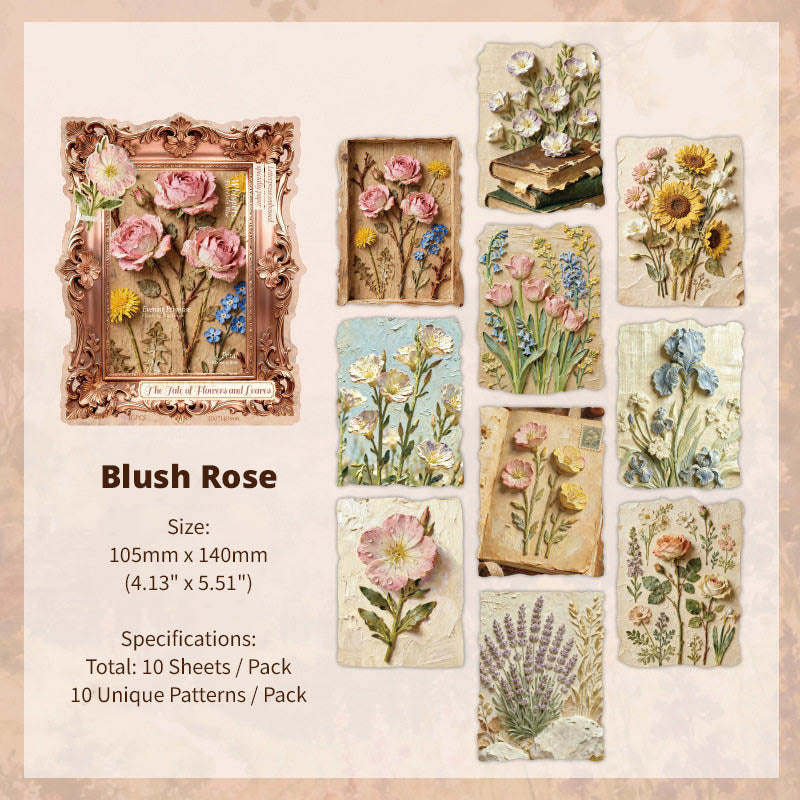 Each pack features 10 pieces of embossed specialty papers, each with beautifully raised botanical details, giving the artwork depth, texture, and a tactile, almost pressed-flower effect. Designed for journaling, scrapbooking, card making, collages, and decorative crafts, these papers feel substantial in hand and instantly elevate any page or layout.