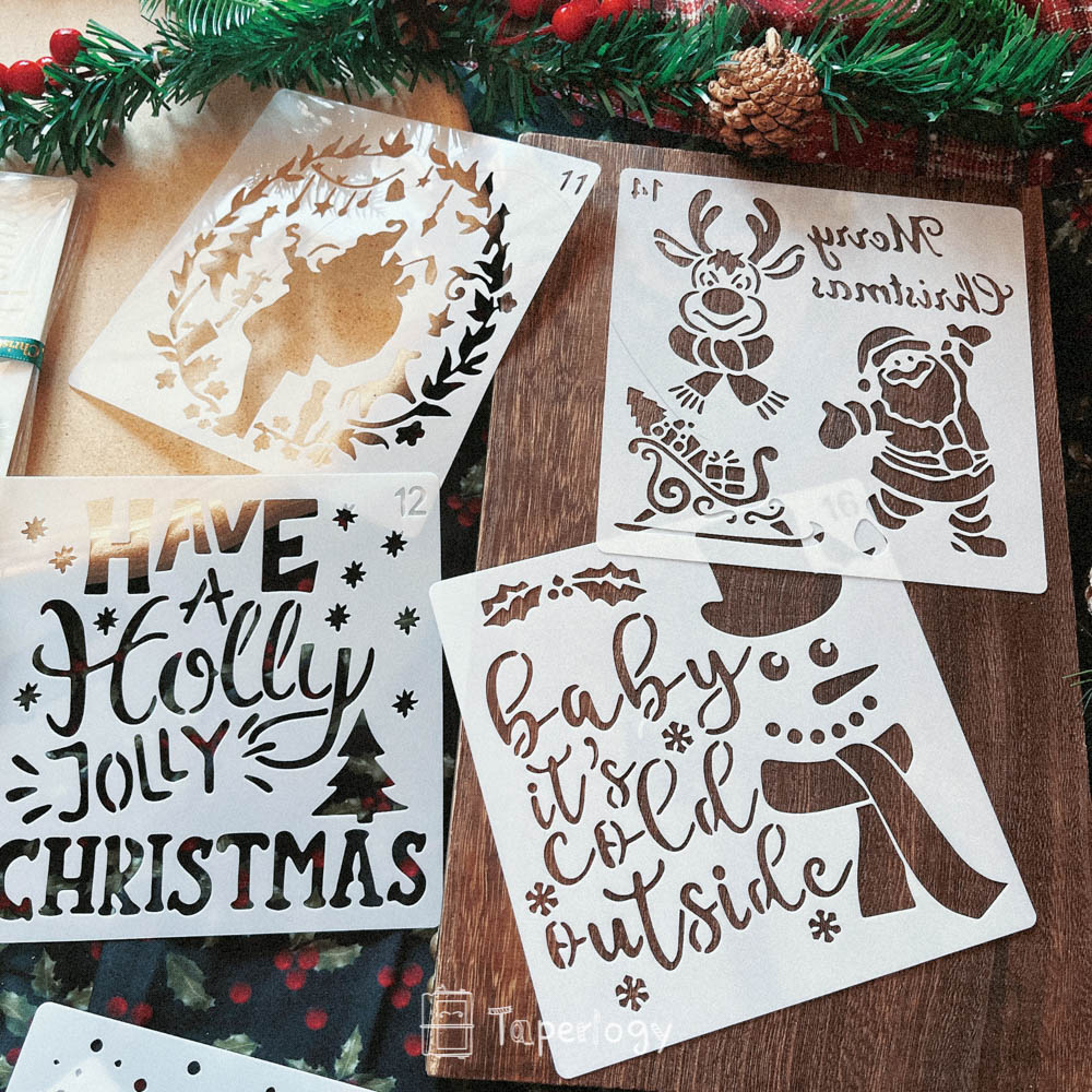 Die enthaltenen Schablonen sind perfekt fĂŒr DIY-Projekte und zeigen festliche Motive wie Schneeflocken, Rentiere, WeihnachtsbĂ€ume, Ornamente und mehr!