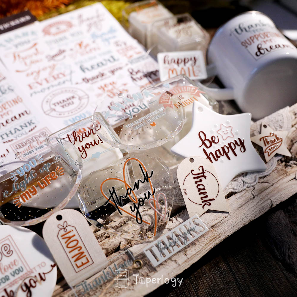 Perfect for smooth, non-porous surfaces like glass, metal, ceramics, and acrylic, these stickers are ideal for customizing gift boxes, jars, candles, or other items for special occasions. The seamless application and vibrant designs add a touch of sophistication to your heartfelt gestures.