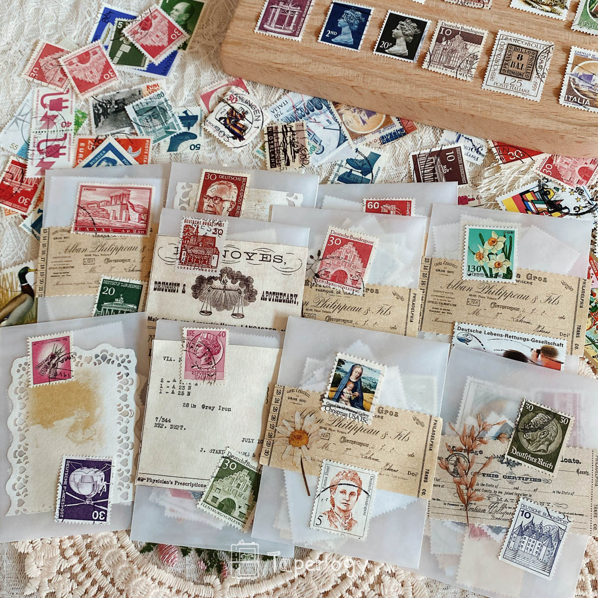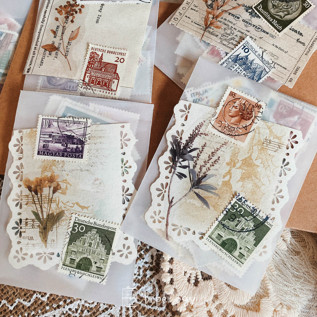 Perfect for adding a touch of vintage charm to your junk journals, scrapbooks, or any other papercraft projects, each set is a treasure trove of nostalgia, featuring a delightful assortment of stamps that will transport you to a bygone era!