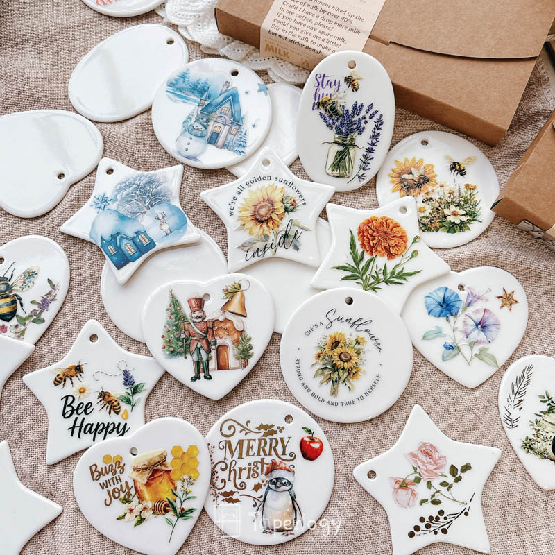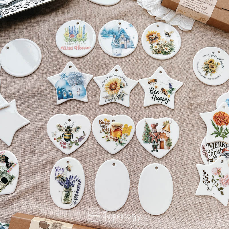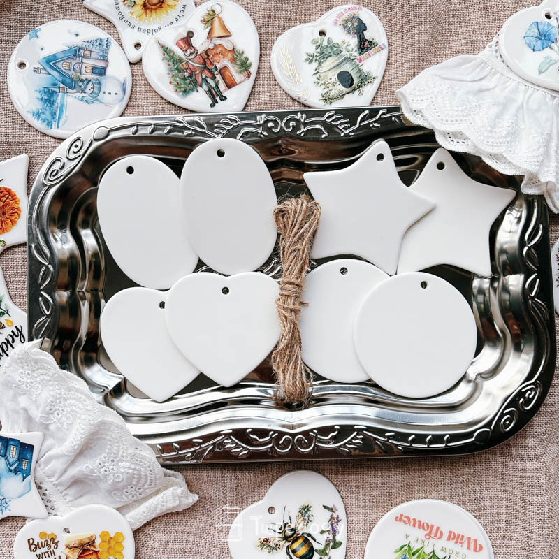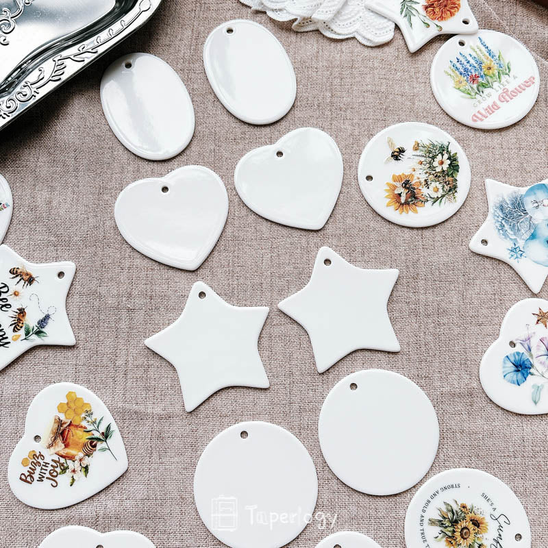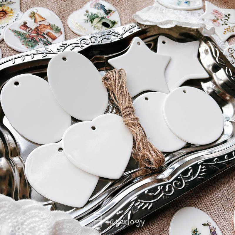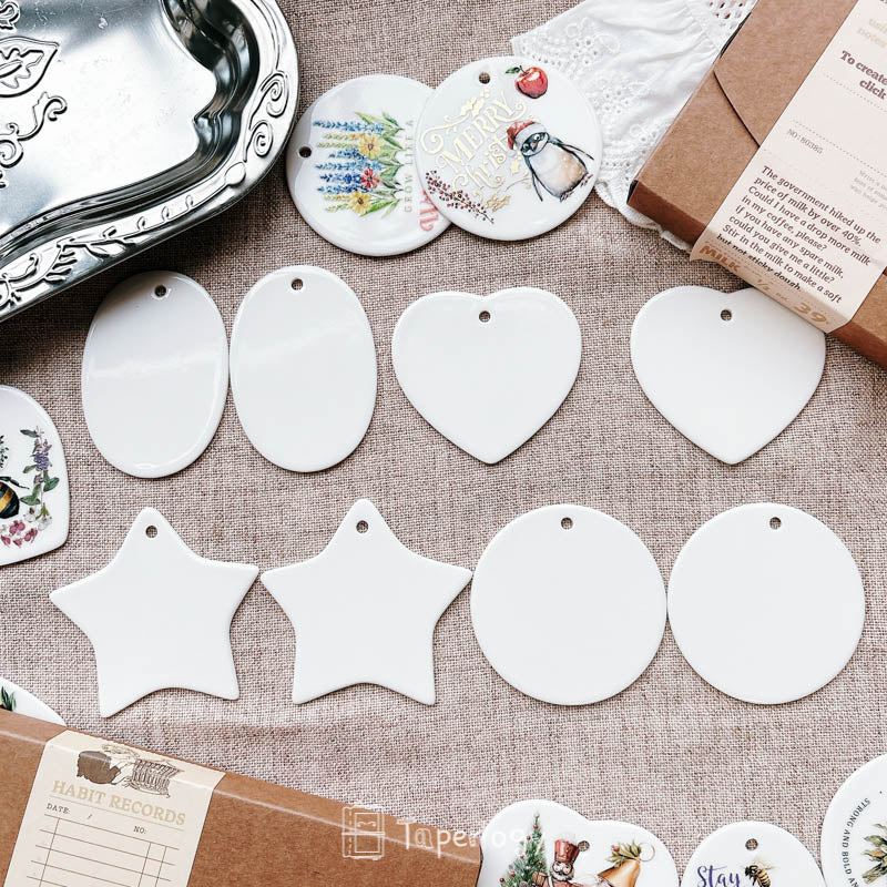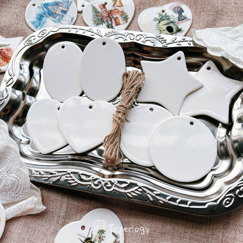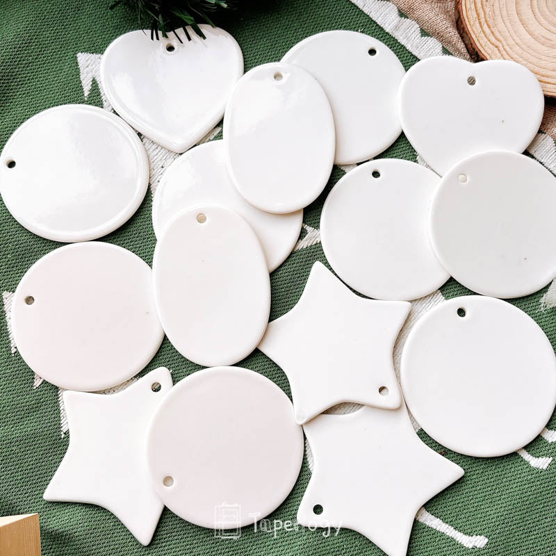 The smooth ceramic surface serves as a versatile blank canvas, ready to be decorated with rub-on stickers, paint, markers, or other creative embellishments. Every piece also features a pre-cut hole at the top, making it easy to thread with string, ribbon, or twine. Whether you’re crafting for the holidays, special occasions, or everyday décor, these tags add a touch of handcrafted charm to any project!